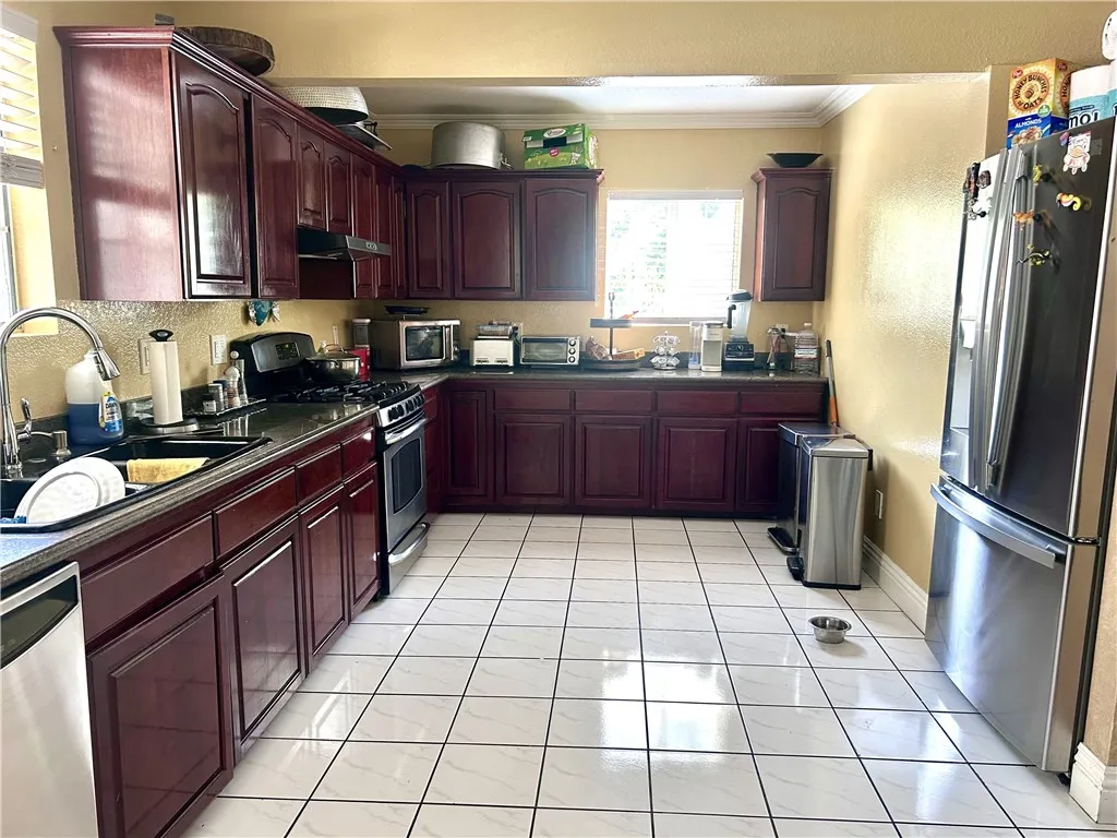 WOW!!! Great Opportunity for a large family, crown molding, spacious bedrooms, ceramic floors, recessed lighting, and new AC. moving ready. FEATURES: Large kitchen with wood cabinets and granite countertops. Great corner lot, big back yard with large patio and flowers and fruit trees, all fenced and with an electric gate, very close to shops and transportation. As a Bonus, the Garage has been converted into a beautiful 20x20 room with laminate floors and a bathroom. DO NOT MISS THIS GREAT OPPORTUNITY, EXCELLENT HOUSE!!! Thank you for showing!!!! Seller is motivated to sell as soon as possible and is willing to assist with the buyers closing costs, subject to the terms of a mutually acceptable offer