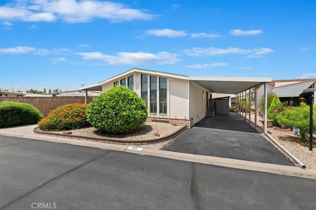 55+ community welcome to this Charming well-maintained manufactured home offering 1,344 sq. ft. of Stylish living space. Showcasing exuberant lighting throughout, this 2-bedroom, 2-bath home features vaulted ceilings and expansive windows that fill the home with warmth and energy. Enjoy a bright open floor plan, a well-equipped kitchen with generous cabinetry, and a spacious dining area perfect for hosting. This home also features a detached casita which offers flexibility for a home office, studio or guess space. Outside you can relax under the gazebo-style patio cover, ideal for outdoor dining or peaceful morning. A covered carport, storage shed and low-maintenance landscaping add convenience to charm. Dont miss this affordable and versatile property with excellent indoor and outdoor living with a community clubhouse, swimming pool and mailboxes are located within minutes of the resident.