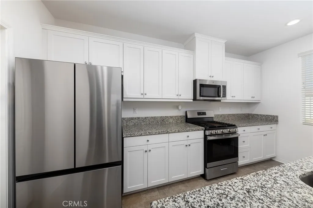 A great Olivewood opportunity. Welcome to Beaumont! This lovely 3 bedroom 2.5 bath home is located in the highly desirable neighborhood of Olivewood. HOA amenities include gated neighborhood, two recreation facilities, hiking/biking trails, playground, basketball court, splash area, swimming pools & more! Quick access to the 10 & 60 freeways. Home features spacious backyard, extended driveway, vinyl fencing, paid off solar (12 panels), instant hot water heater & included water softener system. Interior features include recessed lighting, fire sprinklers, raised panel doors & window blinds. Spacious living room open to kitchen & dining area. Kitchen features an island, granite countertops, European style white cabinets, stainless steel appliances & sink, walk in pantry & included refrigerator. All bedrooms upstairs with adjacent laundry room. Primary suite includes double sink, shower & walk-in closet. Don't miss out, Come and See!
