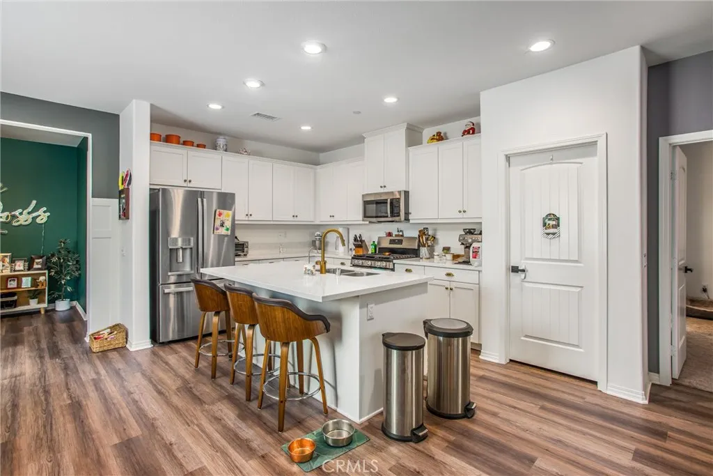 Motivated Sellers!!!! Welcome to the beautiful gated community called Olivewood You will fall in love with this Beautiful 1 story home with open concept!!! The home consist of upgraded quartz counters in kitchen and both bathrooms, upgraded flooring throughout, upgraded interior paint, plus wainscoting, large covered patio, concrete on both sides of the home, also you can park an RV side of the home, concrete stairs front of the yard leading to the front door and save on electric bill because SOLAR is PAID OFF!!!! You will LOVE the MOUNTAIN VIEWS and everything this gated community has to offer with a pool/spa, clubhouse, park, and so much more!!!