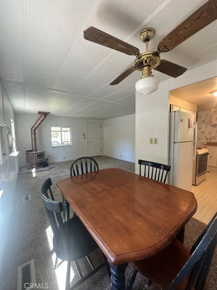 Discover this charming 2-bedroom, 1-bathroom mobile home nestled in the scenic Oakhurst Mobile Home Estates, just minutes from Yosemite National Park. This well-maintained 1,000 square foot residence welcomes you with fresh paint throughout and brand new carpeting that adds warmth and comfort to every room. The inviting family room features a cozy wood stove, perfect for those mountain evenings, and flows seamlessly into the adjacent dining area. The primary bedroom provides a comfortable retreat, featuring a delightful sitting area ideal for reading or relaxing. Recent updates include a newer HVAC system ensuring year-round comfort and energy-efficient windows that help maintain optimal indoor temperatures. The home's location within this peaceful 55+ community offers the perfect blend of tranquility and convenience, surrounded by mature trees and abundant wildlife with stunning Sierra Nevada mountain views visible from nearly every direction. Residents enjoy easy access to Oakhurst's shopping, dining, and amenities, all within a short 5-minute drive. The community's prime location provides an exceptional gateway to outdoor recreation opportunities, with Yosemite National Park's natural wonders just beyond your doorstep. This move-in ready home combines comfortable living spaces, modern updates, and an unbeatable location in one of California's most desirable mountain communities. Again, don't miss out on the amazing opportunity to live in the beautiful Sierra Nevada Mountain area with a $200.00 credit towards your space rent for a whole 12 months!