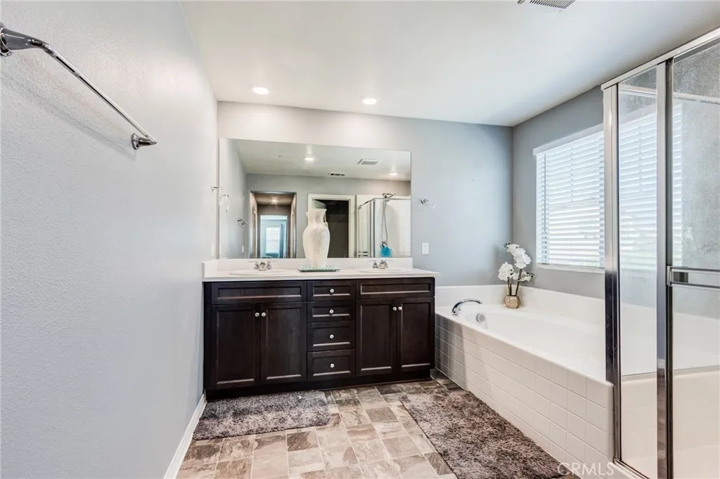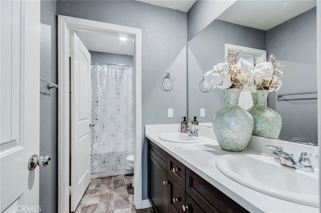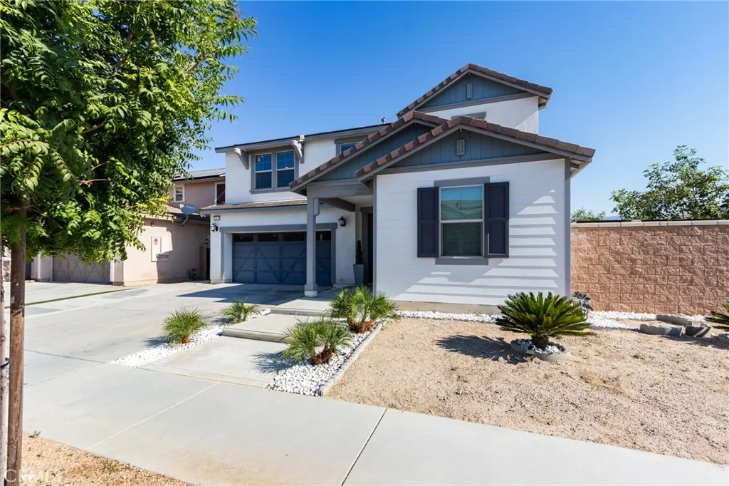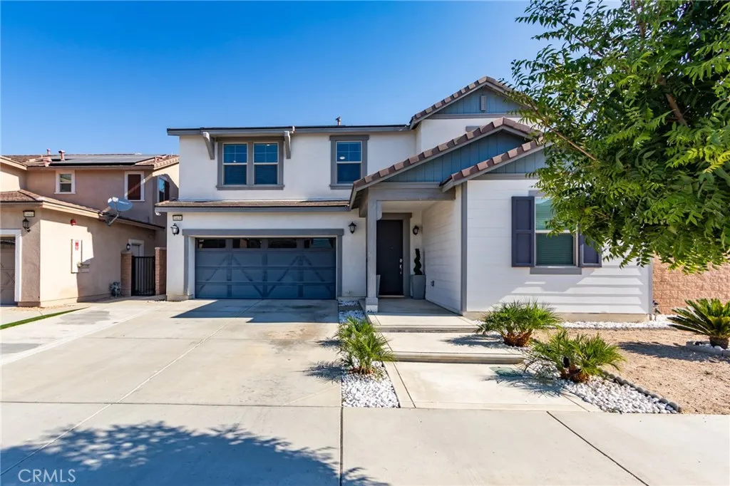 BACK ON MARKET: Charming Corner Lot Home with Exceptional Curb Appeal locate in North Fontana in the Gabion Ranch community! This beautifully maintained home sits on a desirable corner lot and offers an inviting open floor plan filled with natural light. Enjoy the convenience of a downstairs bedroom and full bath, perfect for guests or multi-generational living. A spacious bonus room provides flexible space and can easily be converted into an additional bedroom. The kitchen is a chefs dream, featuring stainless steel appliances, a breakfast counter, and plenty of counter space, seamlessly opening to the dining area and cozy great room ideal for entertaining. Upstairs, youll find a dedicated laundry room and a luxurious primary suite with double walk-in closets and a spa-like soaking tub. Energy-efficient upgrades include solar panels, tankless water heater, and energy-efficient windows. The cemented backyard is low-maintenance and surrounded by block walls for added privacy. A 2-car garage completes this move-in-ready home. Don't miss this perfect blend of comfort, style, and sustainability!