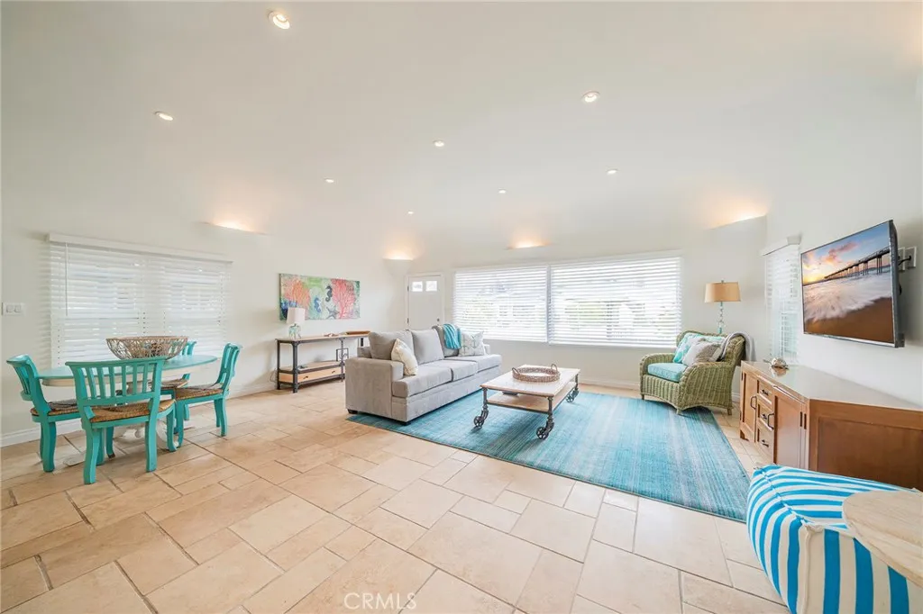 The original "Beach House". This home was moved from its original Strand location. It was a community gathering spot. Now the home sits on 17th street, just steps from The Strand on one of Hermosa's prime walk street locations. The front yard is spacious and well appointed with plants, BBQ, outdoor sectional, dining table, and chaise lounge chairs! Upon entering the home, you will find the main living room open and inviting. Travertine flooring runs through much of the home, with new flooring in two bedrooms. The kitchen is adjacent to the living room with an open floor plan layout, granite countertops, a KitchenAid built-in refrigerator, and KitchenAid appliances. The kitchen was remodeled 10 years ago and has just been freshened with newly painted cabinetry. The entire home is freshly painted with new window coverings. The furnishings have been recently purchased for this amazing rental. The high ceilings make for a fantastic entertaining space. One bedroom opens up to the living room with french doors, the bed is a Trundle Daybed in this bedroom. This bedroom is very private when the french doors are closed. This bedroom can also make for a fantastic office space. Two additional bedrooms are just down the hallway one has a queen bed and the other a king bed. Two bedrooms have ensuite bathrooms, and the other has access from the hallway to one of the bathrooms. All bedrooms have mounted TVs for your viewing pleasure, as well as ceiling fans too! Laundry is to the rear of the home for your private use.