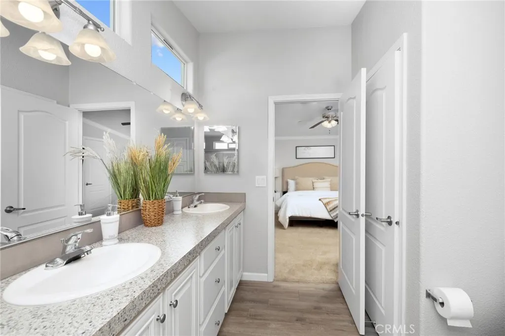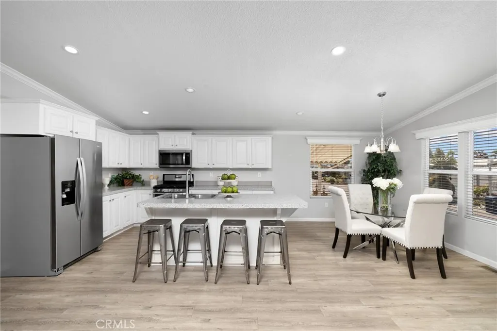 Located in The Fountains - Senior Living Community 55+ embodies an exceptional blend of comfort, community, and natural beauty. This stunning 2019 Fleetwood manufactured home combines modern comfort with timeless style. Featuring 3 bedrooms, 2 bathrooms, and 1,610 sq. ft. of single-level living space, its thoughtfully designed for convenience and function. The vaulted, open-concept living area creates a bright and welcoming atmosphere, perfect for both relaxation and entertaining. The chef-inspired kitchen showcases stainless steel appliances, a large center island, abundant counter space, and seamless integration with the dining and living rooms. The spacious primary suite offers a walk-in closet and private bath, while a large laundry room with sink adds both functionality and storage. Additional highlights include central A/C and heating for year-round comfort, elegant crown molding, stylish window coverings, an expansive wraparound porch with vinyl railing, and a full-length covered carport. The side yard features a concrete patio, an ideal spot to relax and enjoy the beautifully landscaped surroundings. Life at The Fountains, a desirable 55+ community, means more than just a beautiful home. Residents enjoy exceptional amenities, including a clubhouse, sparkling pool and spa, fitness center, library, and game room, providing endless opportunities to stay active, social, and engaged. This move-in ready home offers the perfect blend of comfort, community, and lifestyle in the heart of La Verne.