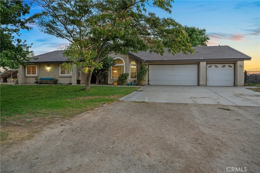 *Live Like Royalty* Spacious Rosamond Ranch with POOL, PAID SOLAR, HORSE FACILITIES & Workshop! Looking for space, privacy, and lifestyle in the desirable Sundale Water District? This Rosamond gem has it all: Over 2.4 acres, paid-off solar, built-in pool & spa with propane and solar heating, 2-stall BARN with TACK ROOM and arena, detached workshop, and over 2,400 sq ft of well-designed living space, all on a fully fenced and cross-fenced lot! Step inside this beautiful 4-bedroom, 3-bathroom home featuring a split-wing floor plan for added privacy. The main suite is your personal retreat with a large walk-in closet, an additional standard closet, and a spa-like bathroom complete with dual sinks, soaking tub, and a tiled walk-in shower with a rain head. Entertain with ease in the formal living and dining rooms, or get cozy in the family room with fireplace and adjacent dining area. The custom kitchen boasts black quartz counters, modern painted cabinets, stainless appliances, and a spacious breakfast bar perfect for everyday living or hosting guests. A THREE-CAR garage with direct home access to the bath adds convenience, while the large mud/laundry room with sink and abundant cabinetry offers functional storage. Three additional bedrooms share a well-appointed bath with tub/shower combo and a bonus storage closet. Outdoors, enjoy the block wall-fenced backyard with covered patio, fire pit and mature trees, ideal for gatherings or relaxing evenings. The horse area includes a 2-stall barn with tack room, sink hookups, and connected arena. Plus, a separate shed-style-workshop w