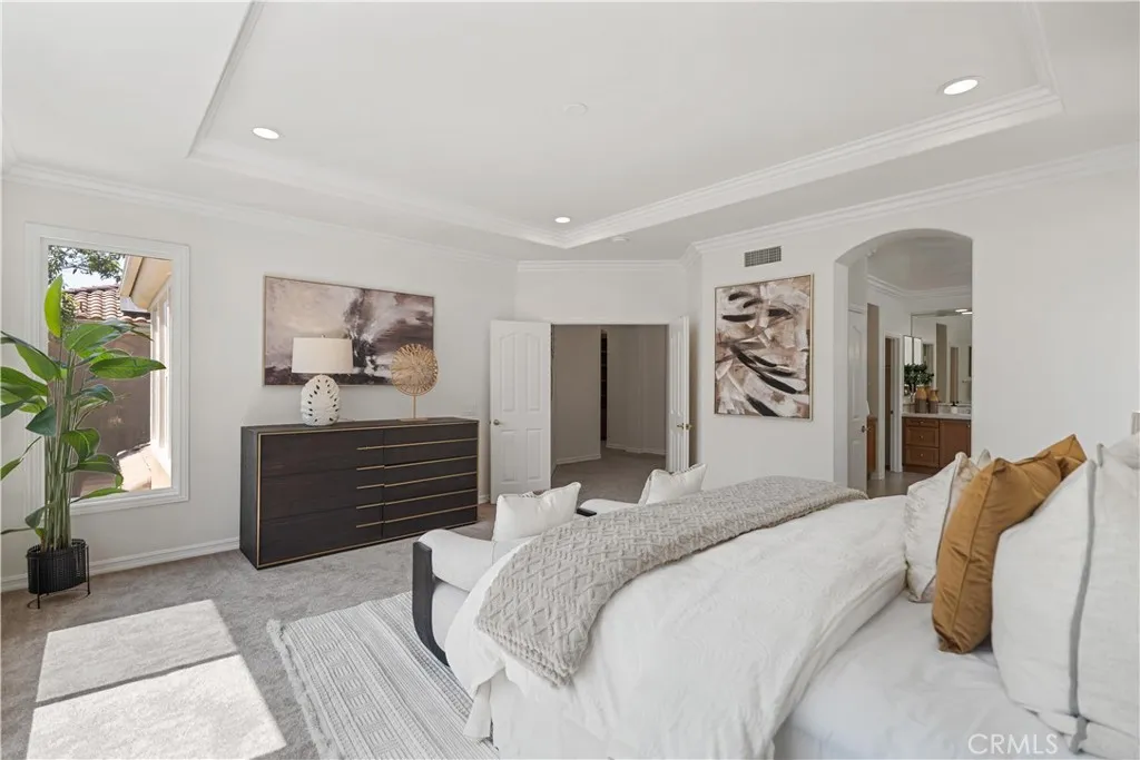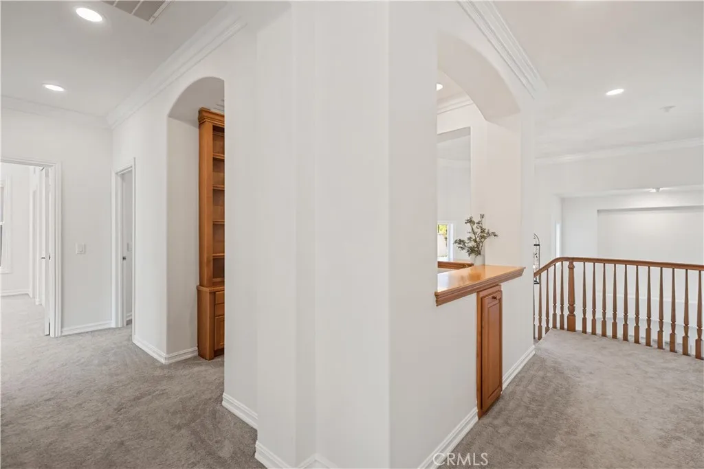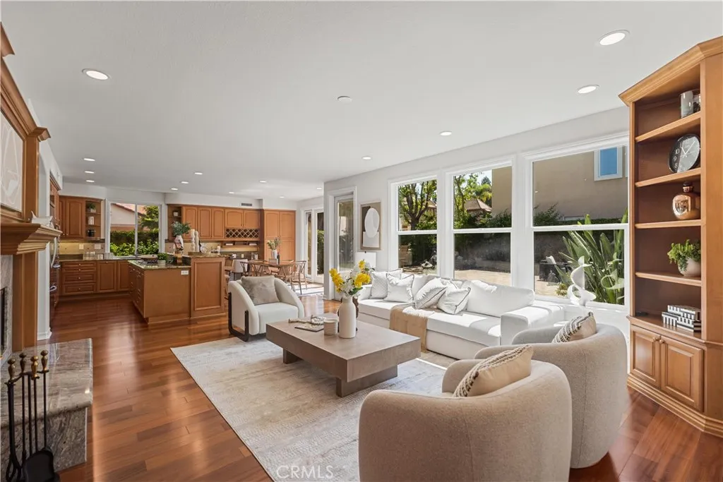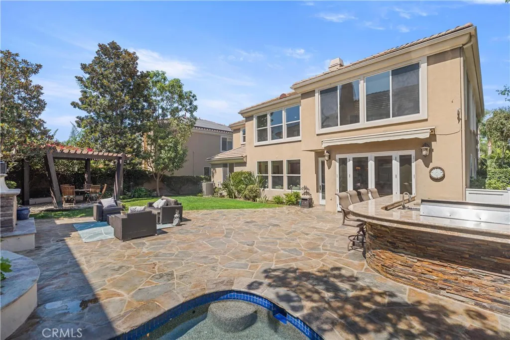 Welcome to this elegant Cristal model estate, perfectly situated in the prestigious 24-hour guard-gated Trailwood community of Northwood Pointe. Featuring 5 bedrooms and 4 bathrooms, this home makes an immediate impression with its grand foyer entry, soaring cathedral ceilings, and an open floor plan filled with natural light. The first level includes a main-floor junior master suite with full bath, a formal dining room, and rich wood flooring throughout. From the dining area, enjoy tranquil views of the side-yard water fountain. The resort-inspired backyard is an entertainers paradisefeaturing a private Jacuzzi/SPA with rock waterfall, custom wood patio, electric folding sunshade shelter, outdoor BBQ, and a cozy fireplace. This rare oversized lot provides one of the most elegant and spacious outdoor retreats in the entire community. Additional highlights include: 24-hour guard-gated with Low HOA fees. Access to two community swimming facilities with full amenities. Walking distance to Blue Ribbon schools: Canyon View, Sierra Vista, and Northwood High. Conveniently close to two shopping centers including Zion and H-Mart supermarkets.