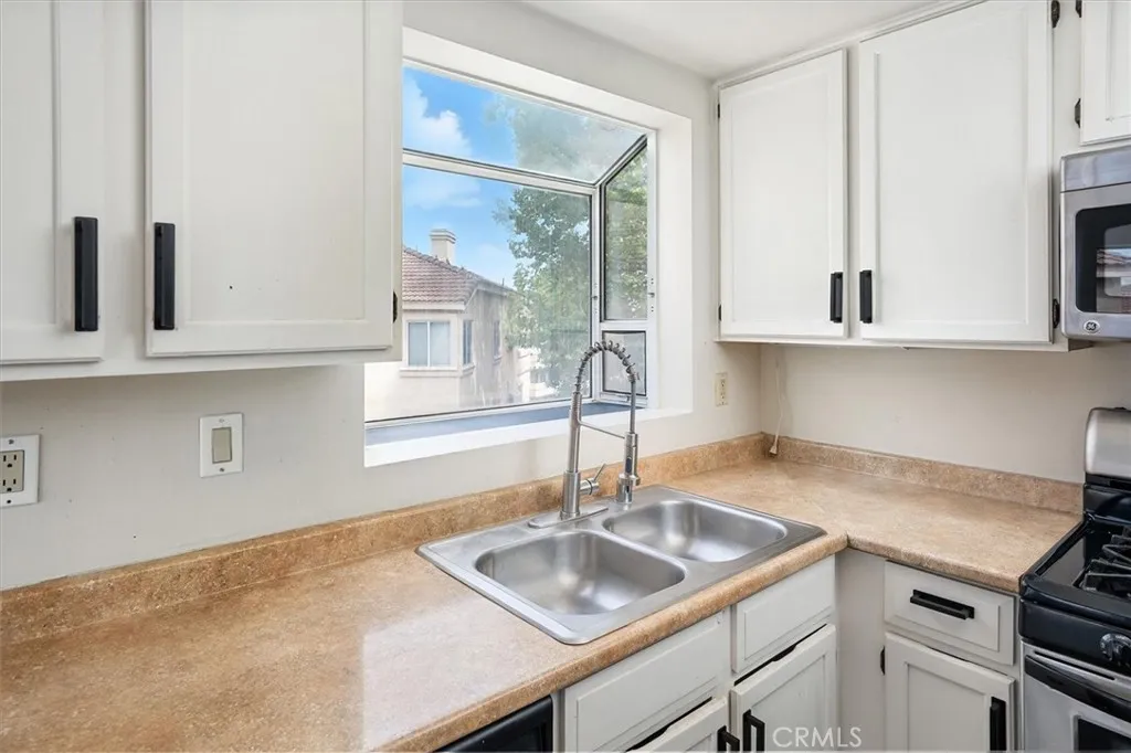 REDUCED REDUCED REDUCED!! Cash buyers preferred for a quick sale (but not mandatory). Due to HOA, 10% down minimum and non-warrantable financing only. Priced for a quick sale in Gated Sierra Glen! Welcome to this corner-unit condo offering 3 bedrooms, 2 bathrooms, plus a spacious loft that can be used as an office, gym, or versatile flex space. The living room boasts soaring vaulted ceilings, an abundance of natural light, a cozy gas fireplace, and an open flow into the dining area enhanced by a beautiful chandelier. The kitchen features a newer microwave and stove, updated hardware, and a window over the sink that brings in extra light and a view of the community. Enjoy a private balcony for relaxing or BBQs, convenient indoor laundry with washer and dryer included, and a two-car side-by-side garagean incredibly rare find in this community! This home has amazing potential with just a little TLCfresh paint and carpet will make it shine. Additional highlights include high ceilings throughout, an excellent location within the community, and access to a sparkling pool and spa. The Sierra Glen community offers easy access to the 14 freeway, nearby restaurants, and shopping. Dont miss this opportunity to own a spacious condo in a gated neighborhood at a great price!