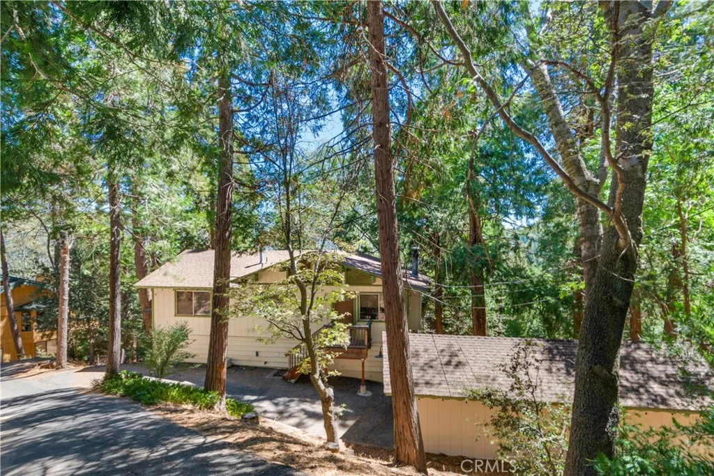 PRICE REDUCTION!!!Charming 4-bedroom, 3-bath mountain home offering approximately 1,600 sq ft on a rare double lot (.39 acres) surrounded by mature trees. The open-concept living area features large windows, a wood-burning fireplace, and an updated kitchen with breakfast bar. Enjoy beautiful San Bernardino Mountain views from the spacious deck. Includes a detached tandem garage, bonus room, and extra cul-de-sac parking. Conveniently located near Lake Gregory, hiking, shops, and dining.