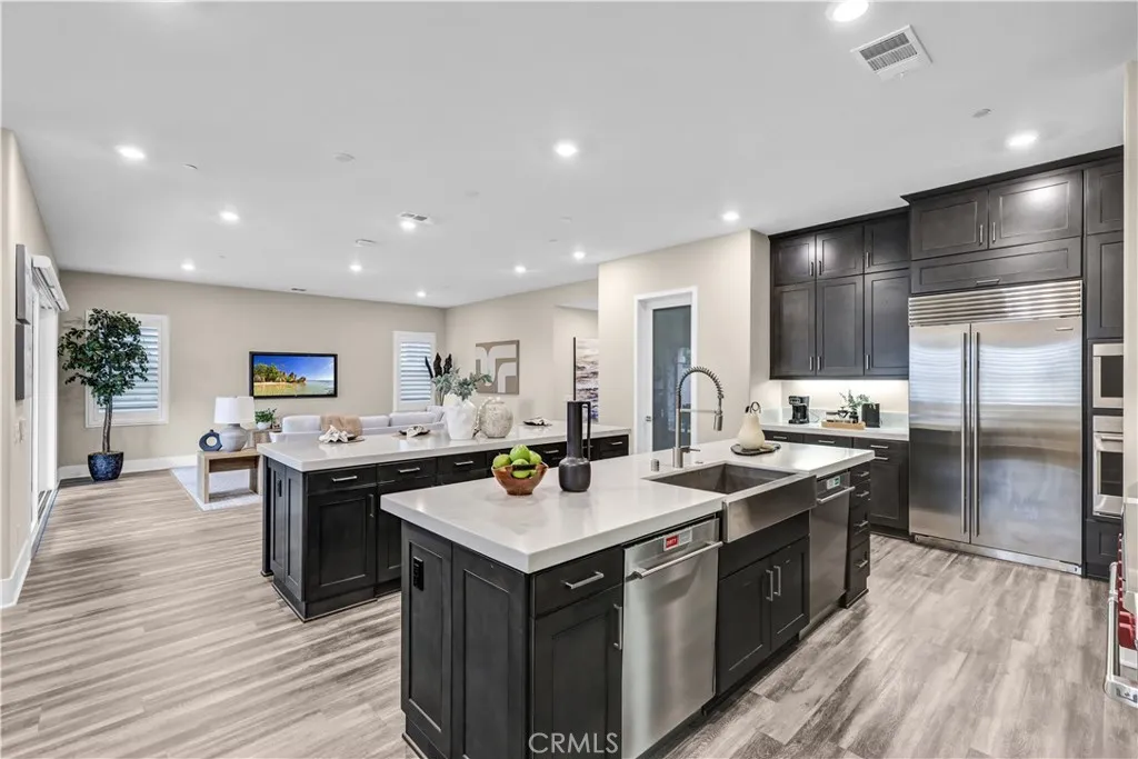 Welcome to 74 Iluna a stunning luxury residence in the prestigious 24/7 guard-gated community of Altair, Irvine. This upgraded Lennar masterpiece spans 4,468 sq. ft. on a 5,100 sq. ft. lot, featuring 4 spacious bedrooms, 6 bathrooms, and a rare third-floor bonus level ideal for a home office, playroom, or entertainment space. Every detail is thoughtfully designed, with soaring ceilings, Driftwood vinyl flooring, upgraded carpeting, rich custom lighting, and elegant crown molding. The chefs kitchen is a showpiece, equipped with Wolf appliances, dual quartz islands, custom cabinetry, and two dishwashers. For the entertainer at heart, the home includes Sub-Zero refrigeration throughout a main refrigerator in the kitchen, a full-height wine fridge, and a mini fridge in the third-floor wet bar. Enjoy seamless indoor-outdoor living with a California room featuring a cozy fireplace, flowing into a low-maintenance, beautifully landscaped backyard ideal for dining and relaxing. Upstairs, the primary suite is a true retreat complete with a spa-inspired bathroom, spacious walk-in closet, and two private balconies offering fresh air and elevated views. Each secondary bedroom enjoys its own private or en-suite bath for maximum comfort and privacy. Living in Altair means access to world-class amenities: three sparkling pools, spas, a stylish clubhouse, BBQ areas, tennis courts, lush parks, and miles of scenic trails. Plus, youre just minutes from the Irvine Spectrum, top-rated schools, shopping, and dining. 74 Iluna is where luxury meets comfort Welcome Home....