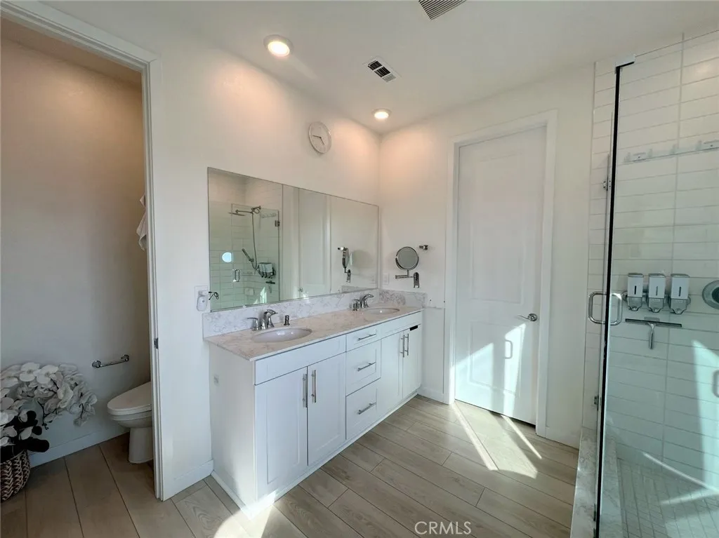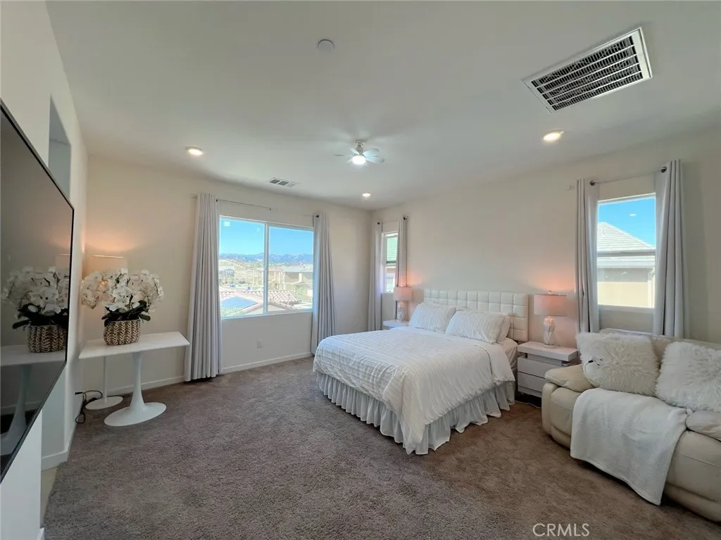 Welcome to your MOVE-IN READY dream home (with FULLY FURNISHED OPTION) in the highly sought-after Trenton Heights community! This beautifully upgraded 5-bedroom, 3-bath ENERGY STAR efficient residence blends modern comforts with stunning mountain views. Upstairs, youll find four spacious bedrooms and two baths, while the downstairs offers a private bedroom and full bathperfect for guests, complete with an upgraded sliding door for added privacy. Step inside and enjoy the open-concept floor plan with soaring 9-foot ceilings, wood/laminate flooring, and contemporary lighting throughout. The gourmet kitchen features complete appliances, an alkaline water system installed, a separate pantry, and upgraded countertops. The serene primary suite is your personal retreat, overlooking mountain scenery and the relaxing clubhouse pool. It boasts a generous walk-in closet, dual vanities, upgraded tile finishes, a spa-like soaking tub, and a separate glass-enclosed shower. Additional highlights include: Dedicated upstairs laundry room with washer and dryer included Linen storage area for added convenience Smart home features, including a cutting-edge smart AC system with dual control and EV charging readiness -All bathrooms are equipped with smart electronic bidets, heated toilet seats with a dryer function. - 12-panel solar system installed - upgraded insulation - a spacious 2-car garage Step outside into your own private oasis with beautiful artificial turf landscaping, two patio gazebos, and a storage area. As a resident, youll enjoy exclusive HOA amenities such as a sparkling comm