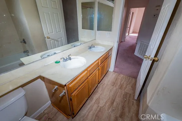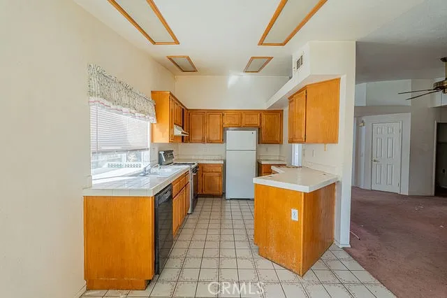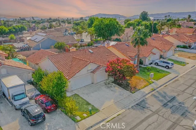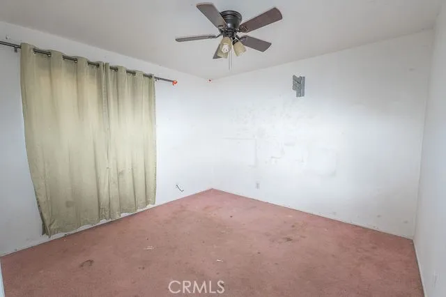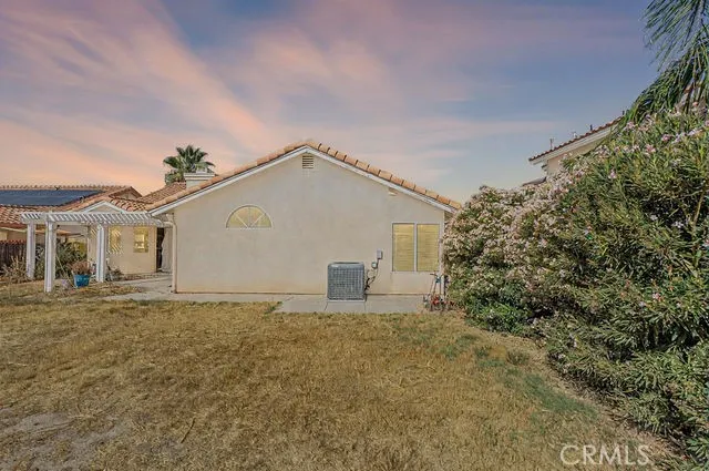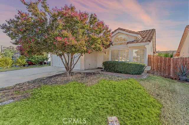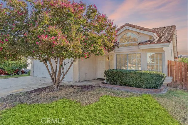Single-story home located in Hemet with a three-car garage and a spacious backyard that includes a covered patio. Property record shows 4 bedrooms, but was converted to a primary suite den, which can be converted back to a 4th bedroom if owner desired. The interior features carpet throughout, ceiling fans, and a living room with a fireplace. The floor plan offers both a separate living room and a dining nook off the kitchen. The primary suite includes a bathroom with a separate tub and shower. Additional features include multiple secondary bedrooms, ample natural light, and a functional layout designed for comfortable living.