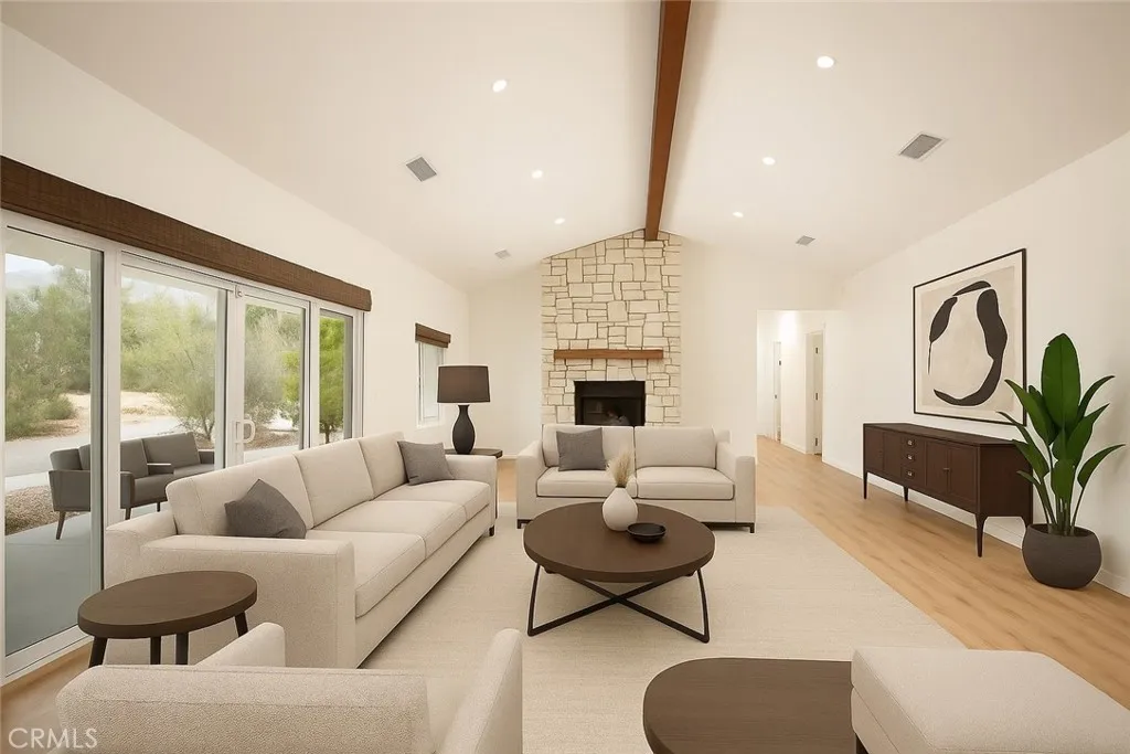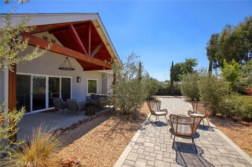 Welcome to an exceptional dual-residence property, a stunning showcase of modern design, luxury finishes, and flexible living. Situated on a huge beautifully landscaped lot. This estate features a main house with four bedrooms and three and half baths, and a separately addressed, fully permitted approx. 1,300 sq ft ADU with 3 bedrooms and 2 bathrooms. Inside the main residence, enjoy a chefs dream kitchen outfitted with WiFi-enabled Thermador appliances, including a 6-burner gas range, 48 panel refrigerator/freezer, 58-bottle wine fridge, micro drawer microwave, and panel dishwasher. Quartz countertops, subway tile, brass hardware, West Elm shelving, farmhouse sink, pot filler, and Delta Champagne Bronze fixtures elevate the aesthetic. A large island anchors the space, perfect for entertaining. The open-concept living area features a floor-to-ceiling stone fireplace with an electric starter, beautiful hardwood floors, vaulted beam ceiling, recessed lighting and dual paned sliders leading out the patio opening up to a serenely landscaped back yard. The primary suite is as luxurious as they come and the primary bath boasts a spa-like bath with an 84 double vanity, 55 freestanding soaking tub, rain head shower, and Kohler polished chrome fixtures. A spacious walk-in closet awaits your design. Three more large bedrooms and gorgeous bathrooms provide space for family and guest alike. Enjoy modern comforts with dual-zone WiFi-enabled HVAC, USB charging outlets, Cat5/coax wiring, indoor laundry with Whirlpool smart appliances, security camera/alarm system, and WiFi-controlled moto