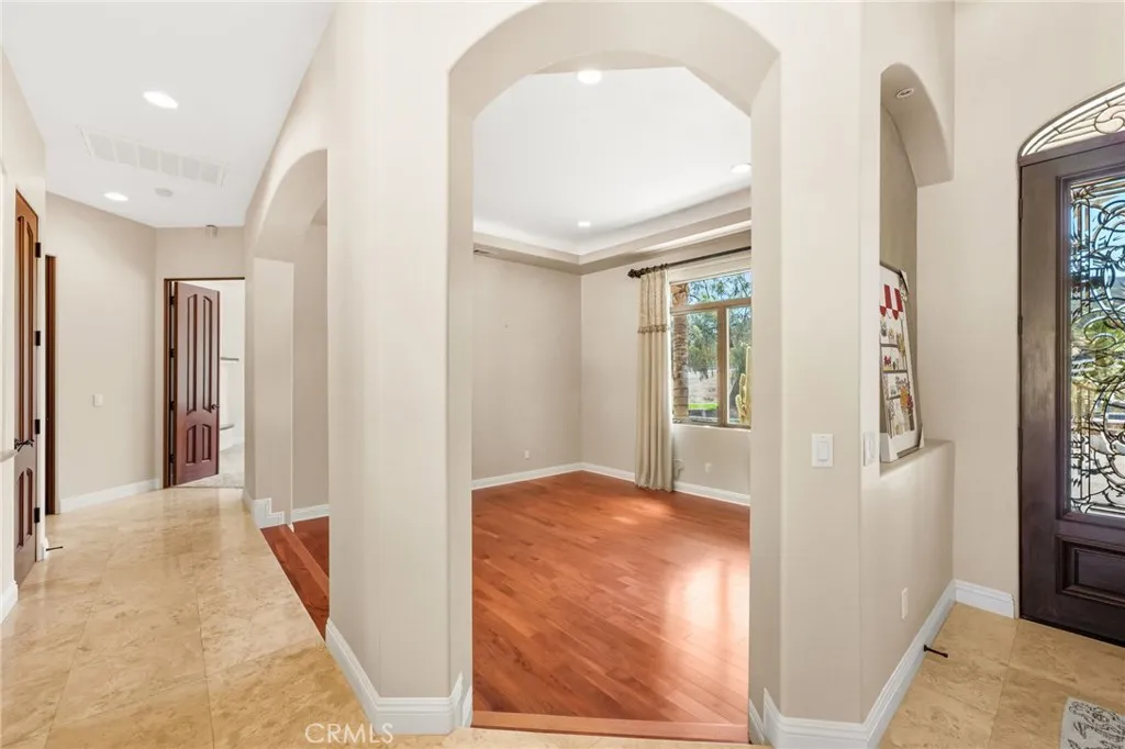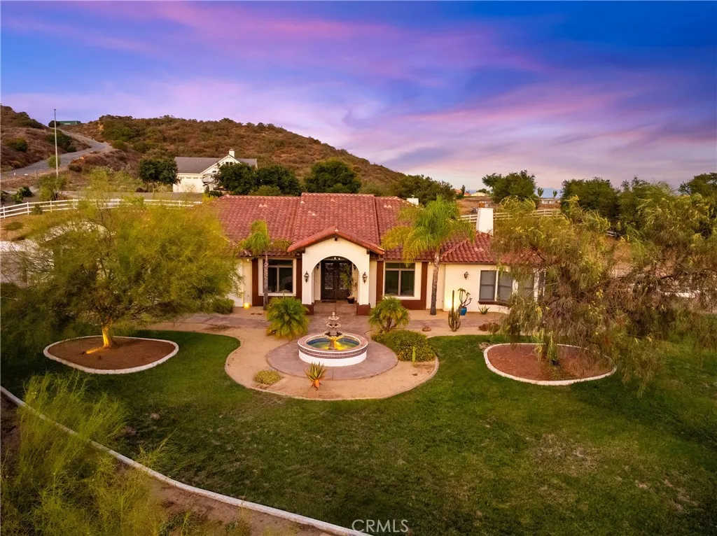 Set on 5.85 acres of mostly flat, usable land, this perfect single story, 3,492 square foot custom estate offers 4 bedrooms and 3.5 bathrooms, located close to the entrance of La Cresta. The automatic gate opens to over 7,000 square feet of custom reinforced concreteperfect for RVs, large vehicles, or ample guest parking. Inside, youll find 10-foot ceilings, 8-foot solid mahogany doors, and 18-inch travertine flooring. The gourmet kitchen is designed for both everyday living and entertaining, with cherry cabinetry, a spacious island with prep sink, wine refrigerator, and premium appliances including a Viking cooktop, KitchenAid double convection ovens, built-in refrigerator, and dishwasher. Formal living and dining room areas feature walnut floors and coffered ceilings with ambient lighting. The primary suite offers a spa-like walk-in shower, jetted soaking tub, dual closets, and elegant finishes. Spend time in the 1,130-square-foot 3 car garage that includes a workbench, attic access, unique ceiling fan, and a 30-foot depth to easily accommodate large trucks. Outdoors, enjoy a built-in Kitchenaid BBQ, fire pit with ambient lighting, terraced landscaping, and a covered patio perfect for year-round gatherings. A 22kW Generac generator provides automatic backup power for peace of mind. 21977 Paseo Chico delivers the best of country living in the prestigious community, La Cresta, with quick access to wineries, restaurants, and shops.