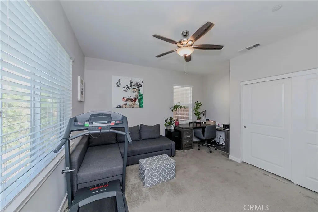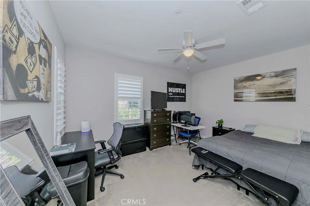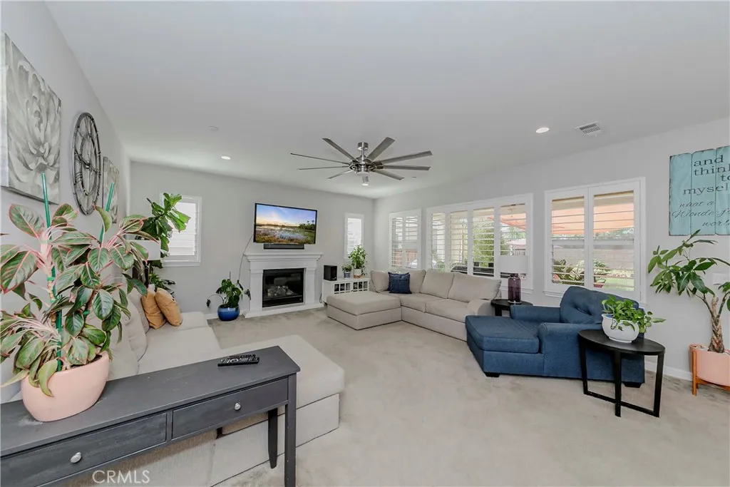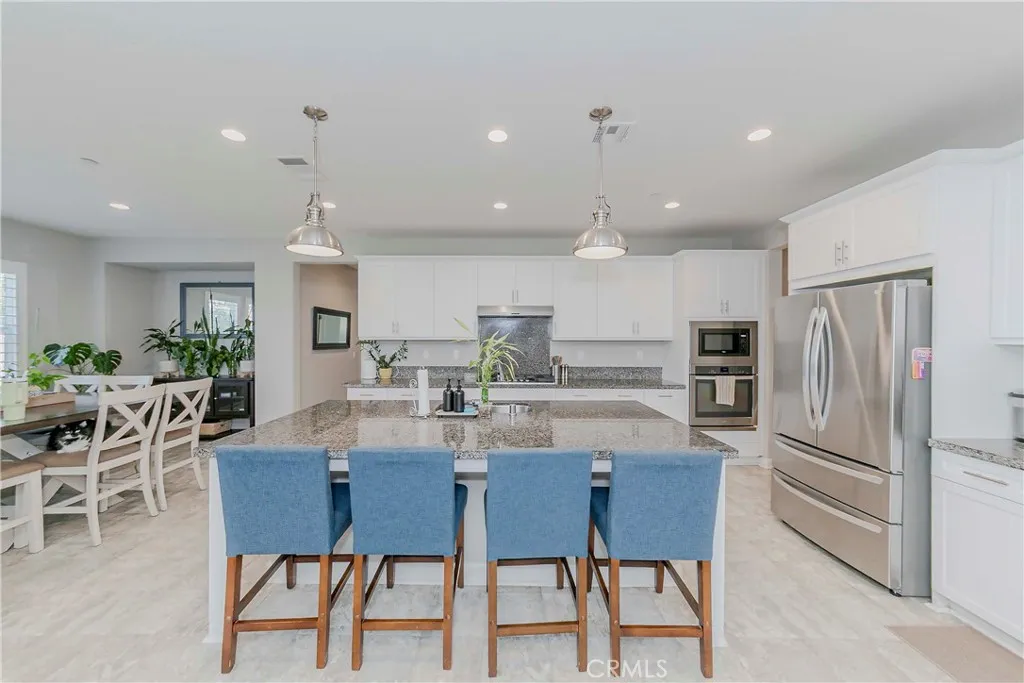 Welcome to your dream home in the highly sought-after Heritage Lake community of Menifee. This beautifully upgraded home sits on one of the largest lots in the neighborhood, offering unmatched space and privacy. Step inside a grand formal entry with soaring two-story ceilings and abundant natural light. The open-concept floor plan creates a warm and inviting atmosphere, leading you to the heart of the home: a stunning gourmet kitchen. This chefs dream features high-end stainless-steel appliances, a large center island, double ovens, a built-in range, and a walk-in pantry. The space flows seamlessly into the dining area and family room, making it perfect for both entertaining and everyday living. A thoughtfully designed floor plan includes a full bedroom and bathroom on the main level, ideal for guests or multi-generational living. Upstairs, you'll find a spacious loft, Four additional bedrooms, a full bathroom, and a convenient laundry room. The large primary suite is your private retreat, offering serene mountain views and a spa-inspired bathroom with a walk-in shower, soaking tub, dual sinks, and a walk-in closet. The backyard is an entertainers paradise, ready for you to create your own oasis. It features stamped concrete, and a California patio cover with ceiling fans. With so much space, you have endless possibilitiesadd a pool, outdoor kitchen, sports court, or anything else you can imagine. This home also includes a Quiet-Cool attic fan and a direct-access four-car garage. Enjoy the resort-style amenities of Heritage Lake, which include a private 25-acre lake, two Jr