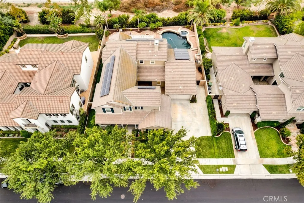 Welcome to this spectacular home in the exclusive College Park neighborhood of Chino! This spacious residence offers 4 bedrooms, 4 bathrooms, over 4,500 sqft of living space, and a large lot exceeding 10,000 sqft perfect for modern living, privacy, and entertaining. Inside, you'll find an open floor plan with a versatile bonus room ideal for an office or additional bedroom. The spacious kitchen features built-in oven, stove, gas range, a large island with sink and dishwasher, overlooking the living room and backyard. A private laundry room with cabinets and a sink provides added convenience. The lower level includes a master suite with a full private bathroom, shower, spa-like tub, and ample closet space. Upstairs boasts a grand loft for entertaining, a full bathroom with double sinks, and two bedrooms with front yard views. Another impressive master suite upstairs offers a large living space, access to a full bathroom with double sinks, bathtub, shower, and stunning backyard views. The backyard is a private retreat, featuring a dog run with access to the kitchen, a covered patio with a built-in grill and mini-fridge, and a saltwater pebble-tech pool perfect for family gatherings and guests. The home has a Tesla solar system and can park up to 3 cars in the garage and driveway. A Zen courtyard in the center adds tranquility, and HOA amenities include a 24-hour gym, clubhouse, pools, ping pong, and more. Located conveniently near shopping and freeways (60 and 71), this elegant property combines luxury, function, and an ideal neighborhood setting. Welcome to your dream home