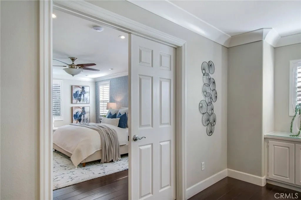 Spacious 5-Bedroom Home in Founders Square, Anaheim. Welcome to this beautifully updated 5-bedroom, 3 bath home offering 2,544 sq. ft. of comfortable living in the highly desirable Founders Square of Anaheim. Step inside to find a bright, open layout featuring a beautiful kitchen with modern finishes, sleek stone countertops, and ample storage-perfect for home chefs and entertaining alike. You will enjoy the beautiful polished travertine flooring downstairs and the cozy laminate floors throughout the upstairs and bedrooms. This amazing home also has gorgeous crown molding and plantation shutters throughout! The updated bathrooms provide a fresh, contemporary feel with stylish upgrades including a freestanding tub in the primary bath. This home is designed for today's lifestyle, complete with a dedicated tech center, making remote work or study both easy and efficient. With 5 generous sized bedrooms, there's plenty of space for family, guests, or flexible use such as a home gym or hobby room. One bedroom and bath are conveniently located on the first floor. This home was built with copper plumbing and has a whole house soft water system and solar that are paid off. Outside, enjoy your private backyard while relaxing on the deck or gardening in the raised bed planters. You will love the convenience of this prime Anaheim location- close to the 5 and 91 Freeways, Disneyland, parks, shopping, dining, and great schools, all while being nestled in a wonderful community. Don't miss the opportunity to call this updated and spacious property your new home!