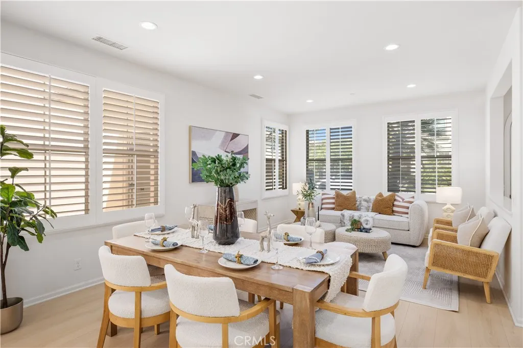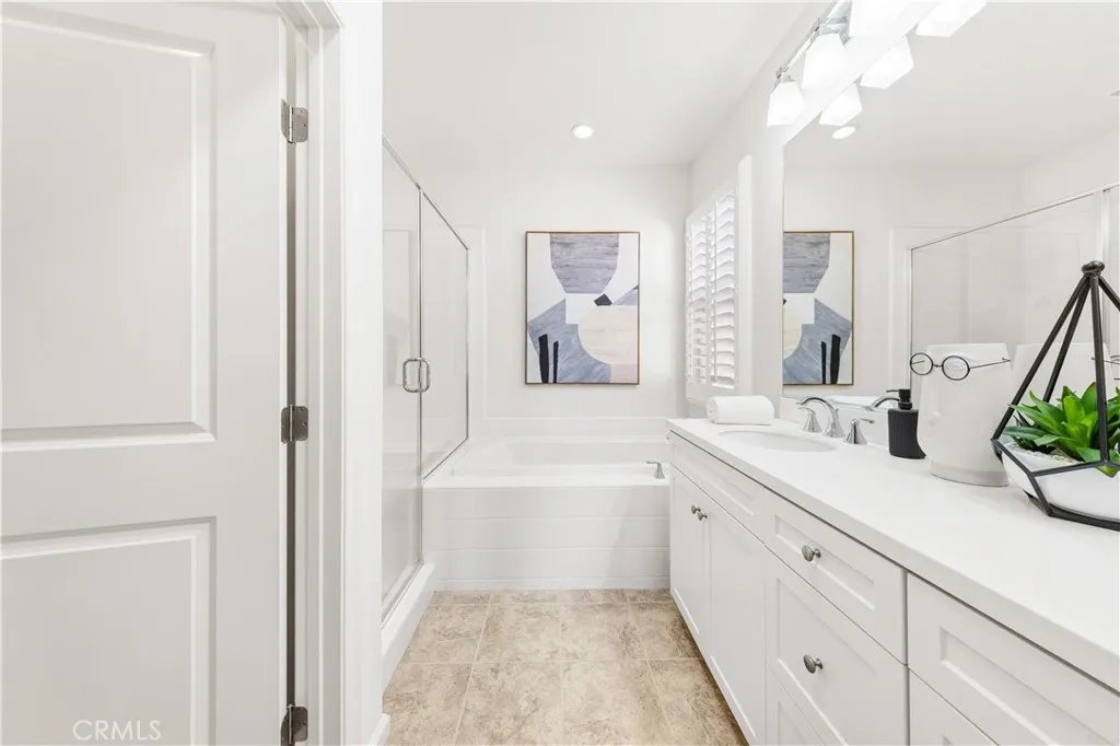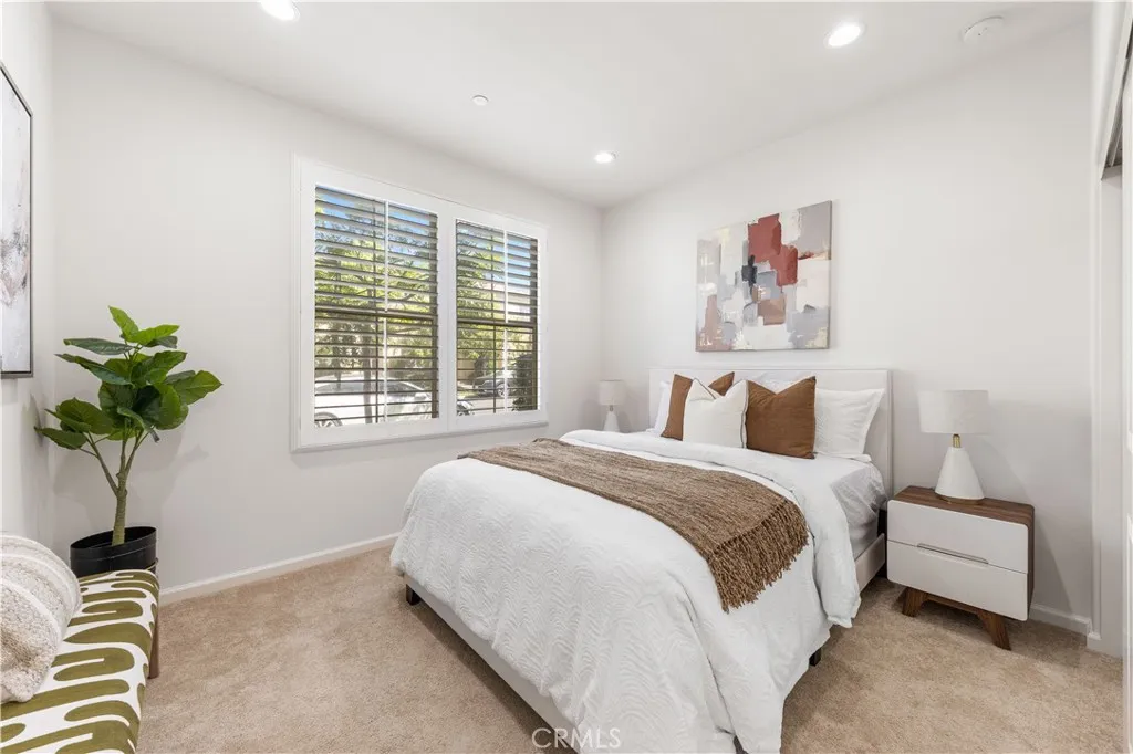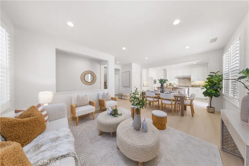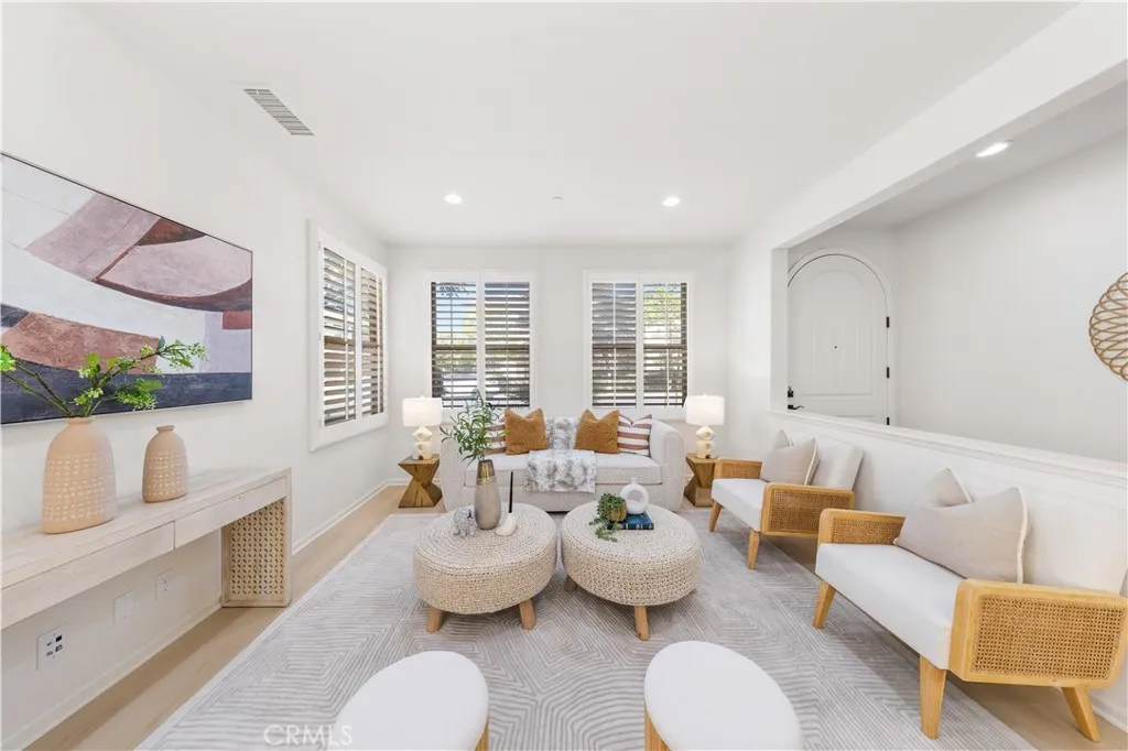 Welcome to 54 Jade Flower in Cypress Village a beautifully designed 3-bedroom, 3-bathroom home offering 1,619 sq. ft. of modern living in the desirable Caserta community. This open-concept floor plan features a spacious living area that flows seamlessly into the contemporary kitchen, creating the perfect space for gatherings and entertaining. A highly sought-after main floor bedroom and full bath provides flexibility for guests or a home office. Upstairs, two additional bedrooms each feature their own ensuite bathroom, along with a convenient laundry room. The primary suite includes a relaxing bathtub and abundant natural light. Upgrades include new laminate flooring and plantation shutters throughout, enhancing both style and functionality. The home also offers an enclosed patio with additional storage and a two-car garage. Residents of Cypress village enjoy access to resort-style amenities, including sparkling pools, spa, lush parks, and scenic walking trails. Located within the boundaries of award-winning Cypress Village Elementary, Jeffrey Trail Middle, and Irvine High School, this home also provides easy access to freeways, toll roads, shopping, and dining.