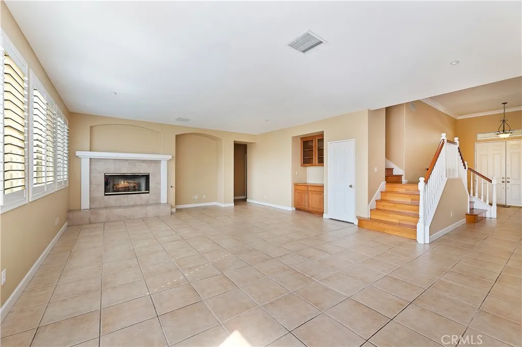 Welcome to luxury living in the prestigious gated community of Palisades in Riverwalk! As you enter into your community, you are greeted by a gorgeous secured access automatic gate w/ alluring fountain & pond features throughout the entrance to your new home This exquisite two-story home boasts a foyer entry way with high expansive ceilings, setting the tone for elegance throughout. The open floor concept creates a seamless flow from room to room, with tons of windows with custom wood shutters throughout that provide an abundance of natural light. This home offers many features with finer details including a separate dining and sitting room just off of the living room that has a full-height window, perfect for enjoying those beautiful sunny days! The family room features a large gas ,tile laid fireplace, as well as a built-in entertainment nook! The spacious kitchen is a chef's dream, showcasing granite countertops, tons of cabine space, under-cabinet lighting, tile flooring, and a kitchen island with sink and seating area. There is a mini bar and a spacious pantry providing plenty of space for storage. The downstairs bedroom offers privacy with its own spacious bathroom with full shower. The laundry room is equipped with a sink, folding area and ample cabinetry. lastly, the downstairs features a powder room for guests. Now Ill make your way up the double sided staircase to experience the upstairs. Step up into your gigantic loft/media room or possible 6th bedroom. All other bedrooms are of good size, including one that has its own private full bath and walk in closet. Ill