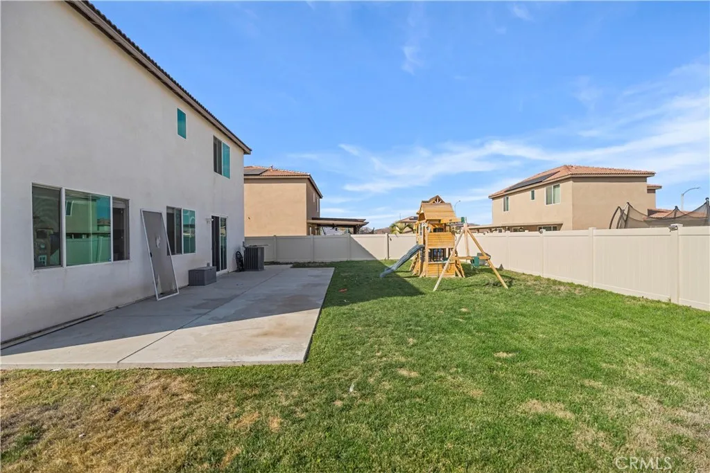 HUGE PRICE REDUCTION! NO HOA. PAID SOLAR. UPGRADED FRONT YARD. EXPANSIVE BACK YARD. GOOD CONDITION. Welcome to this beautiful 5-bedroom, 3-bathroom home built in 2020 with nearly 3,000 sq. ft. of living space. Meticulously maintained, this home feels like new and comes with fully paid-off solar panels for energy efficiency and savings. The spacious 7,400+ sq. ft. lot features a front yard upgraded with over 10k in custom concrete work, creating low-maintenance curb appeal. The expansive backyard is both wide and deep, offering endless possibilitiesfrom a safe play area with a built-in slide for kids, to the perfect setting for entertaining, gardening, or even building your dream pool. Inside, youll find an open floor plan with abundant natural light, a modern kitchen, and a convenient downstairs bedroom and bath for guests or multi-generational living. With no HOA, low property taxes, and a prime location near supermarkets, restaurants, and major freeways, this home blends comfort, convenience, and lifestyle.