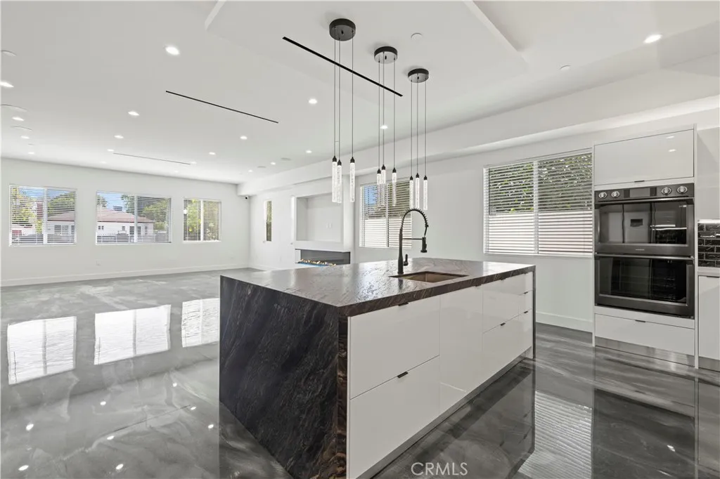 Welcome to this stunning brand-new modern residence built in 2025, located at 15209 Cohasset St, Van Nuys, CA. This contemporary 4-bedroom, 3.5-bathroom home spans an impressive 2,391 sq ft and offers a perfect blend of luxury, comfort, and functionality. Property Highlights: Spacious Floor Plan: Open-concept living with soaring ceilings, perfect for entertaining and everyday living. Gourmet Kitchen: Equipped with top-of-the-line stainless steel appliances, a massive waterfall island with modern pendant lighting, sleek high-gloss cabinetry, and an elegant black marbled backsplash. Elegant Finishes: The home features high-end polished floors with a stunning marble-like effect, recessed lighting, and a built-in contemporary fireplace that serves as the focal point of the living area. Primary Suite: Luxurious master retreat with a private bathroom featuring a dual-sink vanity, a frameless glass shower with matte black fixtures, and modern design details throughout. Additional Bedrooms & Bathrooms: Each room is bright and spacious, with ample closet space and stylish finishes. The bathrooms are tastefully designed with marble-style tile work and illuminated mirrors. Outdoor Space: Enjoy a beautifully landscaped yard with modern drought-tolerant plants, redwood mulch, and a clean, contemporary aesthetic. Parking & ADU Information: The property includes ample parking with designated spaces for both the main house and the rear ADU (Accessory Dwelling Unit). Main House: Access to a covered carport for secure parking. ADU: Rented separately with its own parking area. Driveway: Spaci