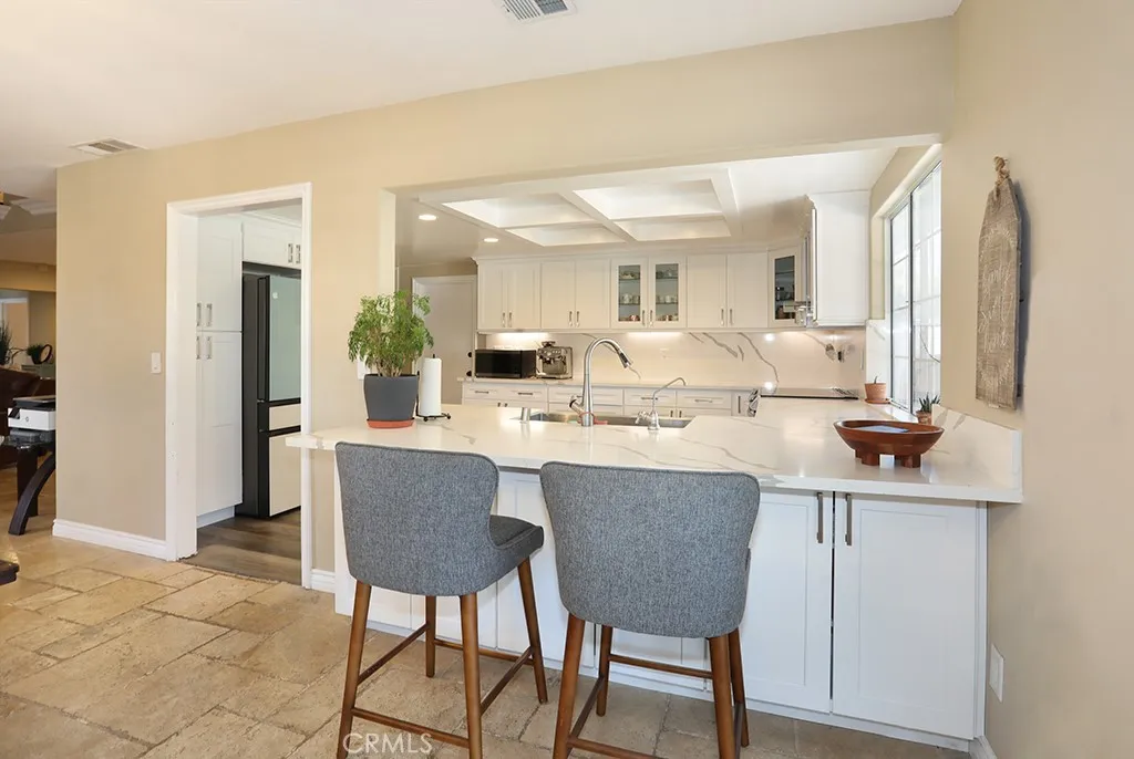 Welcome to one of Fullertons most desirable neighborhoods! This charming single-level home offers 3 bedrooms, 2 bathrooms, and 1,690 sq. ft. of living space on a spacious .28-acre lot/(12,000 Sq.Ft). Step through the impressive double-door entry into a bright and inviting interior. The dining and living rooms are enhanced with beautifully maintained travertine stone flooring, creating a timeless and elegant feel. The remodeled kitchen features premium granite countertops, perfect for the home chef who loves both style and functionality. Natural light pours in through abundant double-pane windows and French doors, filling the home with warmth. The living room highlights three designer wall niches with accent lighting, while the master suite opens to a private elevated deck overlooking the backyard and includes a custom walk-in closet. The expansive backyard provides endless possibilities for entertaining, relaxing, or creating your dream outdoor retreat. Additional conveniences include custom automatic doors and thoughtful design details throughout. Dont miss the opportunity to make this stunning Fullerton home your own!