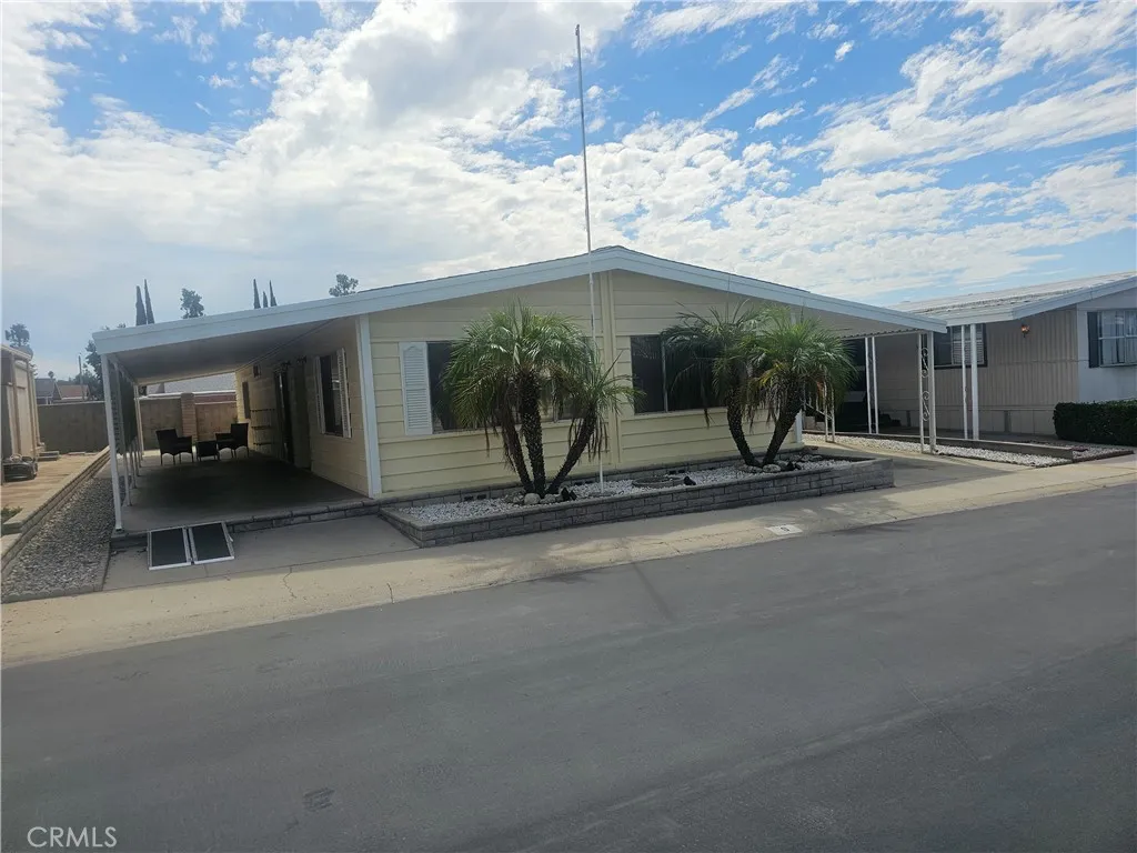 What's New? EVERYTHING!! within one year to now! Newly installed $8000.00 REMODELED HANDICAPPED Walk-In Shower in Primary Bathroom, including NEW fixtures, commode, sink & vanity cabinets; NEW commode in 2nd Guest Bathroom, NEW paint & NEW Laminate flooring throughout, NEW kitchen sink, faucets & lighting with TWO Pantries and a circular BREAKFAST BAR; NEW Blinds for the many windows; In a separate room is the laundry area with NEW washer & Dryer less than one year old, counters and storage, could be used as an office too! NEW ROOF 2021, Plus Wall to Wall Closet in H-U-G-E Primary Bedroom. THIS HOME BOASTS OF "NO HALLWAYS", perfect for handicapped accessibility. Light & Bright, INCREDIBLE AMOUNT OF STORAGE throughout this gorgeous home too! So much more to say.....with the low profile entrance, no steps, the full length covered side patio with privacy panels, room for gardening or ? in the back of the home. Orange Grove is the Best & Finest All Age Communities in prestigious Redlands, offering a serene, quite atmosphere for their residents. Lots to do and participate in when the Community Rec Hall doors open for POTLUCKS, BINGO NIGHT, SOCIALS, COFFEE KLATCH, POOL/BILLIARD TABLES & GYM/EXERCISE RM too. Enjoy the outdoor pool & jacuzzi, family BBQ & Picnic area and all of the wonderful residents that call Orange Grove Mobile Estates home! (Ser#A/B5468) Did I mention RV Parking is available for only $40.00??? Lot rent for this home is only $939.72. WOW! FINANCING AVAILABLE!