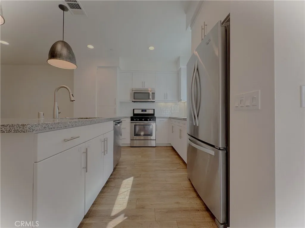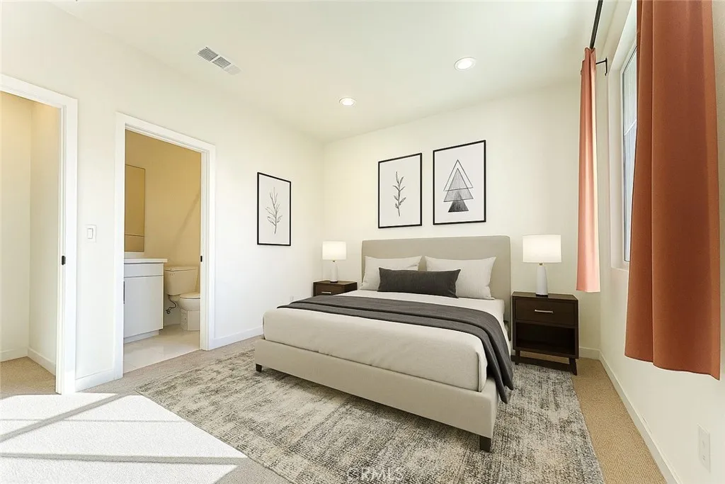 Spectacular tri-level townhome is located in the highly desirable Bonita Village Community of Pomona, bordering Claremont and Montclair. Built in 2017 by Beazer Homes spans 1,654 sq. ft. of modern living space with 3 bedrooms, 3.5 baths, 2 private balconies, and an attached 2-car garage where every bedroom includes private full bath. A standout feature is the main-level jr. suite w/full bath en-suite is perfect for guests, multi-generational living, home office, or any creative use you see fit. The open-concept floor plan blends style, comfort, and functionality, making this home ideal for a wide variety of lifestyles. This modern, move-in-ready home comes equipped with custom roman shades treatments throughout, ceiling fans in every room, ring doorbell, custom pull out organizers in kitchen, and much more. The Property includes monthly association dues and appliances: (two refrigerators, and washer/dryer units). Centrally located, and only minutes from the I-210, I-60 and I-10 freeways. Plenty of shopping and dining experiences, and in close proximity to Pomona and Claremont educational institutes.