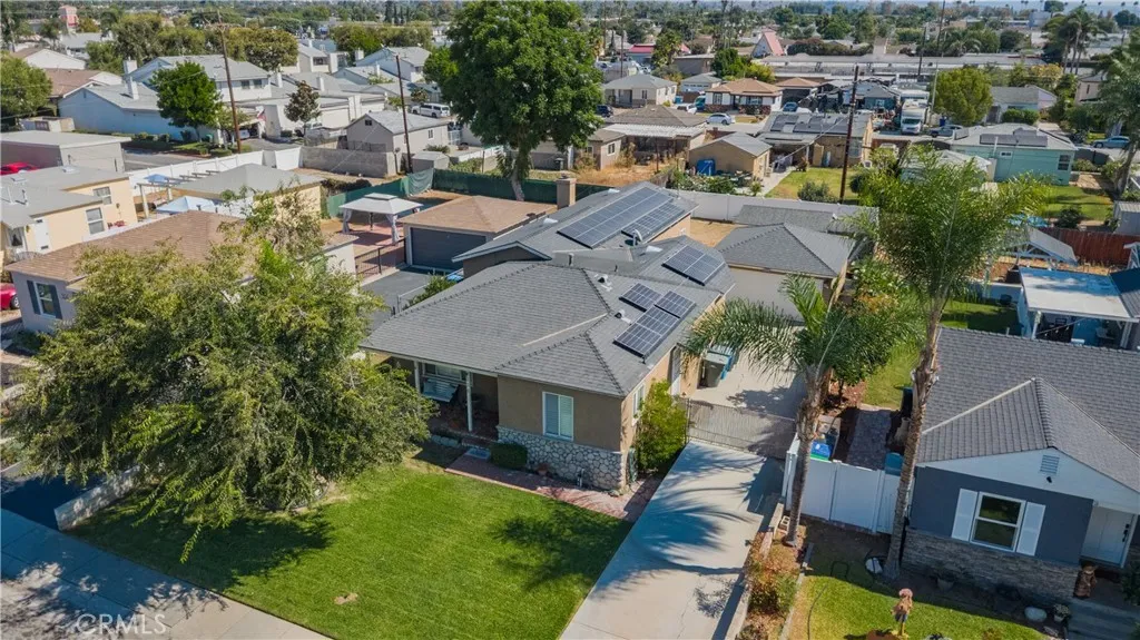 Welcome to this cozy single-story solar equipped residence in La Habra, offering a spacious and functional layout. This home provides 1,842 square feet of comfortable living space, featuring 3 bedrooms and 2 full bathrooms, all situated on a generous 7,715 sq. ft. flat lot. The home's design centers around an open floor plan that effectively connects the bright living room, kitchen, and dining area. The kitchen is well-equipped with granite countertops, featuring a 6-burner cooking range, a stainless steel sink and dishwasher, and a walk-in pantry for additional storage. Walk through the hall to discover a spacious family room with a cozy fireplace in the back, perfect for additional relaxation at home. Interior finishes include durable laminate wood flooring throughout most living spaces, modern recessed lighting, and classic wood shutters in the living room, family room, and kitchen. The property features an individual laundry room and a detached 2-car garage accessible via a secure private gate. The exterior provides a beautiful set-back front yard and a low-maintenance backyard. A detached storage unit in the back can be perfectly utilized as a dedicated home office, studio, or professional workspace. In addition, the home is equipped with solar panels for reduced utility costs. This home also offers an excellent financial advantage: access to an Assumable VA Loan with a highly competitive low interest rate, providing a compelling opportunity for the next owner in the current market. Desinated to Fullerton Joint union high school distrct at high school level, with excel