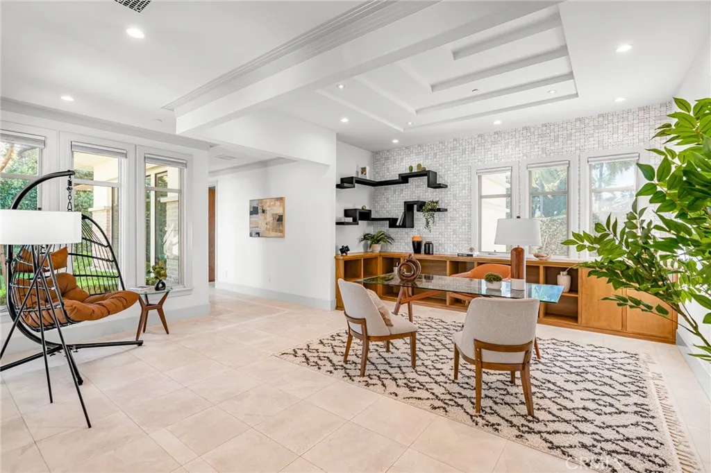Located in the prestigious Santa Anita Village area of Arcadia, this hard-to-find single-story custom estate offers a perfect blend of timeless elegance and modern luxury. The grand foyer opens to a stunning great room with honed and polished marble floors, complemented by a separate library featuring exquisite custom cabinetry and millwork. The expansive gourmet kitchen boasts a marble waterfall island with an attached breakfast nook bench, walk-in pantry, and a separate sous-chef kitchen. A spacious family room with a wet bar flows seamlessly to the beautifully landscaped yard, while an enclosed, glassed wine cellar and custom home theatre with wood and silk paneling provide unparalleled opportunities for entertainment. Additional highlights include a limestone and walnut fireplace in the living room with retro ceiling details, three guest bedrooms each with en-suite bathrooms, and a luxurious master suite with a spa-style bath featuring marble surfaces, an air-jetted tub, steam shower, and large walk-in closet. This home is equipped with a built-in security system, central vacuum system, and water softener, along with high-end appliances, designer lighting, and artisan cabinetry. The tranquil backyard patio is perfect for relaxing or gathering with family and friends. Conveniently located near parks, dining, shopping, the public library, and award-winning Arcadia schools.