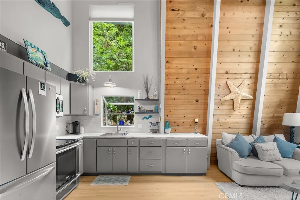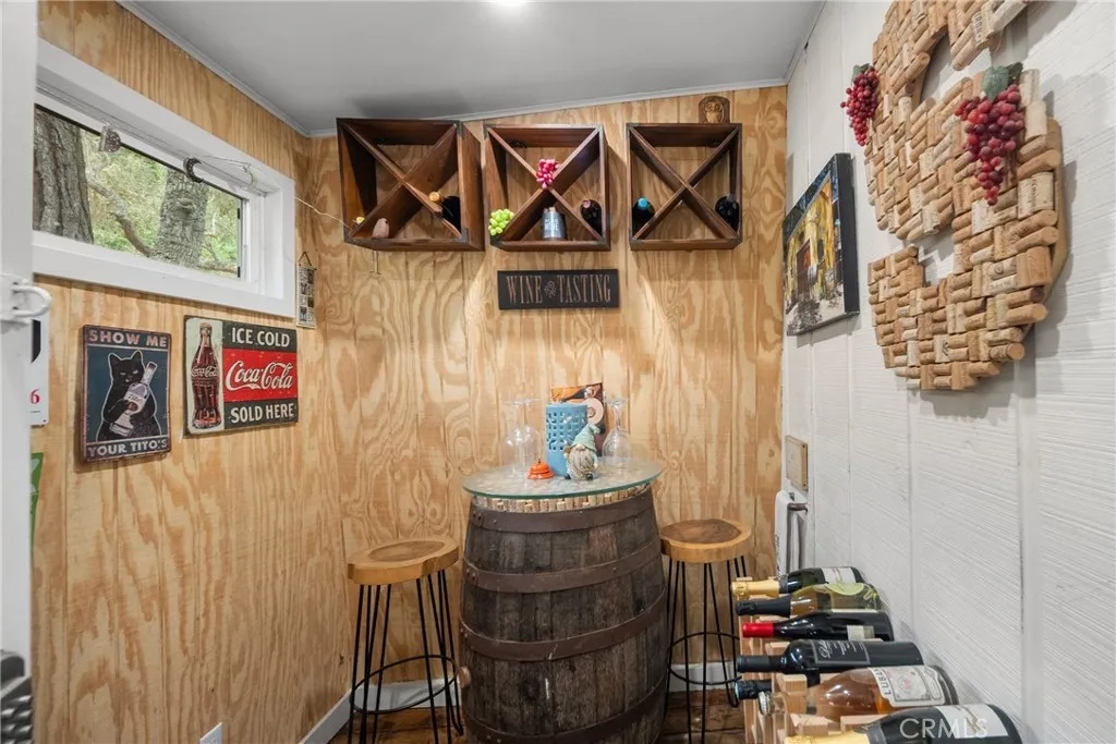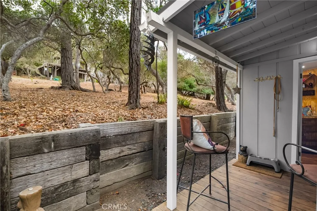 Tucked away among the majestic pine trees of Cambria, this updated 2-bedroom home with a sleeping loft offers a serene escape that feels worlds away from the everyday. Set on over a quarter acre, the property combines privacy, charm, and modern updates, making it an ideal retreat for full-time living, part-time enjoyment, or as a licensed vacation rental. Inside, the home has been thoughtfully updated over recent years with new flooring throughout, fresh interior and exterior paint, and remodeled kitchen and bathroom spaces. The layout features two comfortable living areas, enhanced by a newer electric fireplacethe perfect cozy touch for relaxing evenings. Dramatic floor-to-ceiling windows in the main living room fill the space with natural light and frame the surrounding pine trees, bringing the outdoors in. A dedicated wine room adds a touch of sophistication and is ready for entertaining or personal enjoyment. The primary bedroom offers a private balcony overlooking the tranquil property, while the expansive outdoor deck is designed for gatherings with friends and family. Complete with a built-in gas fire pit, the deck is ideal for year-round entertaining, stargazing, or simply enjoying the peace and quiet of this secluded setting. Adding to the homes versatility is a newly constructed studio workshop with electricity, perfect for hobbies, creative projects, or a private workspace. Beyond its beautiful interiors and functional spaces, the homes location is a true highlight. Surrounded by mature pines and natural beauty, it feels tucked away and quiet, yet it remains conv