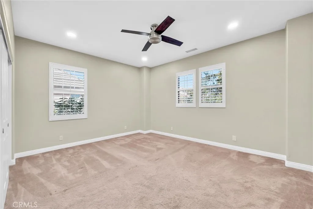 Location! Location! Location! Gorgeous MUST SEE 4 Bedrooms and 3 Baths Home Located on a PREMIUM LOT in the heart of Woodbury. Fabulous Stonetree Plan 2. Convenient Main Floor One Bedroom and Bath. The light and bright Living Room Features Cozy Curved Upgraded Corner Fireplace and French Doors to the Private Patio. The Chefs Delight Kitchen Boasts White Cabinets, Double Ovens, Granite Counters, Full Tile Backsplash, Gas Cook Top with a Vented Hood, a Built-in Desk and Large Central Island and Overlooks the Dining Room which Boasts French Doors Leading to the Private Courtyard. The Primary Suite Features French Doors to the Expansive Balcony, Large Walk-in Closet, Relaxing Soaking Tub and Tiled Shower with Glass Enclosure. All Bedrooms are Spacious. Convenient Upstairs Laundry Room. Direct Access 2 Car Garage with Epoxy Floor and Storage Cabinets. Fresh New interior paint throughout, Recessed lighting, Custom Plantation Shutters an, Zoned HVAC, Zero Maintenance Paved Front and Side Yard. Enjoy Resort Style Living with 7 Pools, Heated Spas, 16 Parks, Numerous Sports Facilities, a Private Clubhouse, Playgrounds and Tot Lots, Picnic Areas and the Fabulous Jeffrey Open Space Trail. Minutes from Woodbury Town Center with numerous Shops and Restaurants.