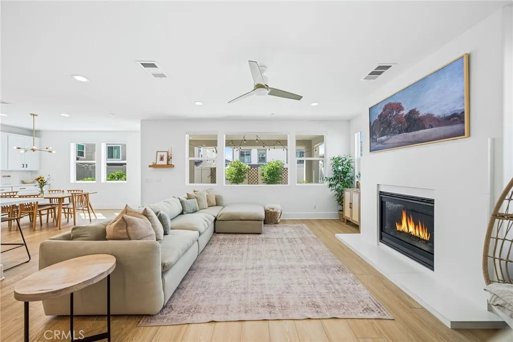 Welcome to 32017 Radiant Drive, a fantastic, fully updated, 4-bedroom, 3-bathroom home with a 2-car garage in a highly desirable Temecula community. This property is built for modern living, offering a perfect blend of stylish interiors, incredible amenities, and a convenient location. It's a turnkey opportunity to secure a vibrant, amenity-rich lifestyle. Inside, you will find high ceilings, recessed lighting, and a mix of upgraded luxury vinyl plank, tile, and carpet flooring not only for easy maintenance, but also for added style. When it comes to layout, this house speaks to convenience, as it includes a main-level bedroom and full bathroom, providing ideal flexibility for you and your guests. The gourmet kitchen features Quartz counters and a large island that flows openly to the family room with a fireplace - perfect for gatherings so you won't miss any of the action. Outside, you can easily relax on the covered patio with views of the surrounding hills. By living here, you don't just enjoy the comforts of your turnkey home. You can also access amazing facilities such as the community pool, spa, clubhouse, gym, sports courts, dog park, and miles of biking/hiking trails! Combining a beautiful, thoughtfully designed interior with a wealth of community amenities, this Temecula home offers the pinnacle of comfortable, active living. All the work is doneit's time for you to move in and enjoy.