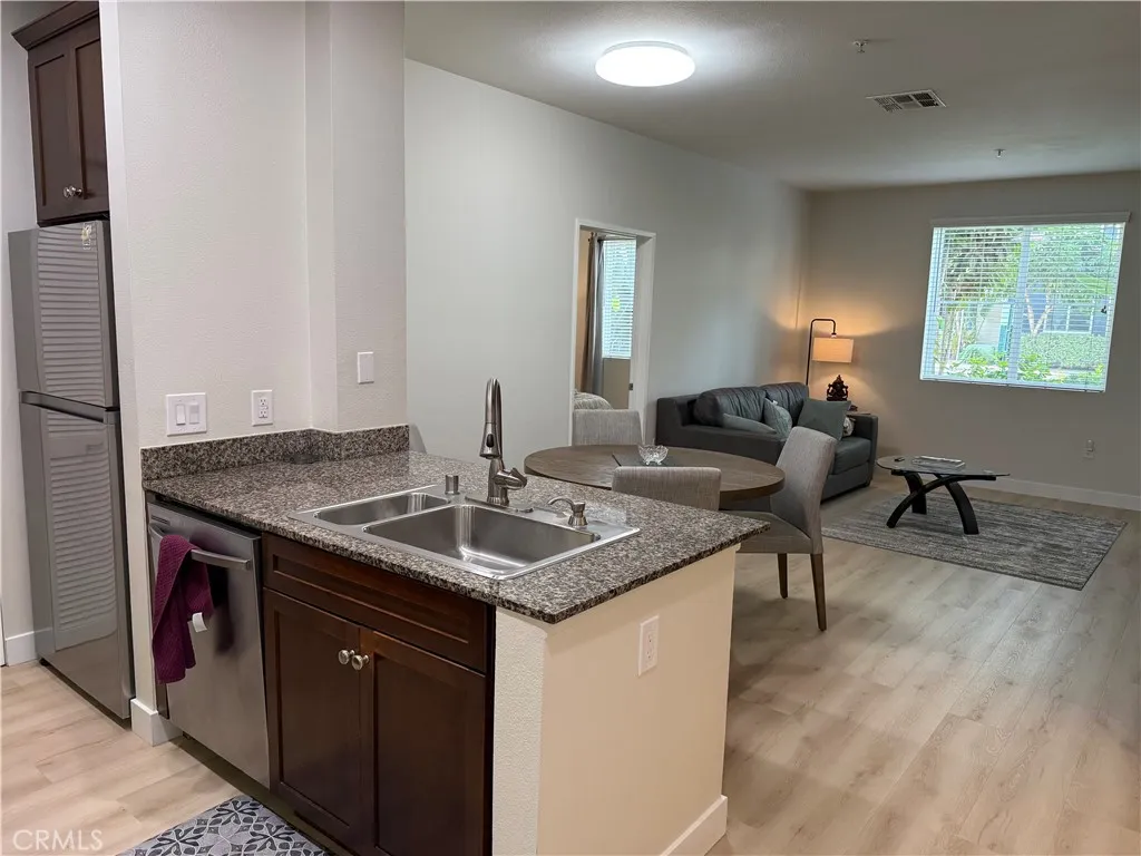 Experience resort-style living in the highly sought-after Avenue One community of Irvine. This beautifully upgraded first-floor residence offers an open-concept layout that seamlessly connects the kitchen, dining, and living areas to a private outdoor patio. The kitchen features modern cabinetry, ample counter space, and comes fully equipped with all appliances, including a washer and dryer. The home includes two spacious bedrooms and two upgraded bathrooms, complemented by modern flooring throughout, fresh interior paint, custom closets, LED kitchen lighting, upgraded electrical fixtures, and new baseboards. The large primary bedroom offers two closets and an attached bath, while the sizeable guest bedroom overlooks the patio and includes its own walk-in closet. A large hallway closet and an ample-sized guest bathroom add additional storage and functionality. Two reserved parking spaces and plenty of guest parking are included. Avenue One residents enjoy access to exceptional amenities, including a pool, jacuzzi, outdoor cooking area, fire pits, state-of-the-art fitness center, playground, and indoor basketball court. Located at 1170 Scholarship, this home combines comfort, style, and convenience for the ultimate Irvine lifestyle.