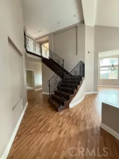 Spectacular views from this beautiful former model home on a cul-de-sac. Large backyard with a pool and spa. As you enter through the gated stamped concrete courtyard into your new home, you are greeted by high ceilings, an elegant wrought iron staircase, a formal living and formal dining room with crown molding, The spacious kitchen opens to the family room and features granite counters w/ full granite backsplash, breakfast bar, white cabinets, double oven, dishwasher and a gas cooktop. The family room opens to the backyard and includes a fireplace, celling fan and built in entertainment center. There are two bedrooms downstairs plus a downstairs bathroom with a shower and upgraded countertop. The second bedroom is an office. Amazing views from the large backyard featuring a newer pool and spa, vast grass area and large covered patio with a tile roof and stamped concrete flooring. Fantastic for entertaining. Upstairs is the grand primary suite with incredible views of the surrounding mountains, hills and canyons. the primary bathroom features dual sinks, a separate shower and tub, and a walk in closet. The other upstairs bedrooms have lighted ceiling fans and share a Jack and Jill bathroom with double sinks and a bathtub, other upgrades include arched doorways throughout, large baseboards, storage shelves in the garage, and an indoor laundry room. So much more to see ! price reduction for fast sale seller are very motivated.