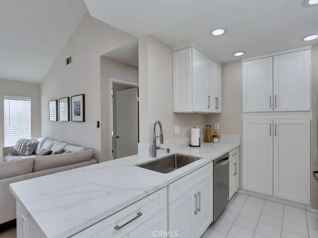 Great Corner Unit-Light and Bright and move-in ready, 71 Cloudcrest is a stylish and upgraded unit in Aliso Viejo, a gorgeous community in the heart of Orange County. Step inside to a beautifully remodeled interior with a custom white kitchen featuring quartz countertops, modern cabinetry, and stainless steel appliances for a fresh, contemporary feel. Updated lighting and abundant natural light fill open living and dining spaces anchored by a cozy fireplace, while a private balcony is perfect for morning coffee or relaxing evenings. The newly remodeled primary bathroom includes dual sinks, quartz countertop, spacious shower, and elegant tile floors for practical luxury. The updated second bathroom extends the same attention to detail and modern finishes, offering comfort and convenience for guests etc. Just steps across the street, Creekside Park features scenic walking paths, nature trails and community favorite dog park, ideal spot for pet owners and anyone who enjoys the outdoor. Residents of The Villas also enjoy a resort-style community pool, perfect for relaxing or socializing on sunny days. Town Center shopping, dining, and gorgeous beaches are only a short drive away. This turnkey home is ready for its next chapter, visit, experience the light-filled spaces, and make it yours. Don't wait, this one wont last long! DM me for a private showing.