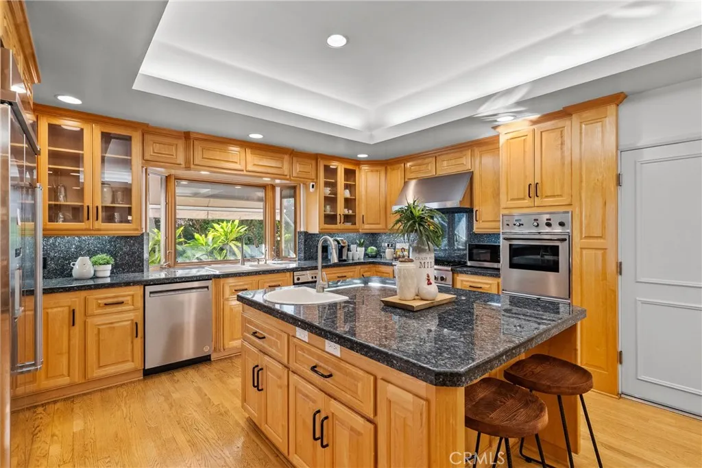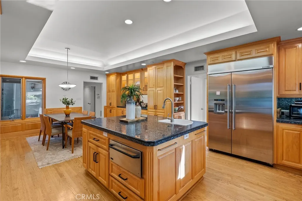 Welcome to 19200 Ballinger Street, a classic California residence tucked within the prestigiousChteau Highlandsneighborhood. Lovingly cared for by the same family for more than six decades, this timeless property rests on a beautifully landscaped17,500 sq ft corner lotframed by mature trees and lush gardens offering both privacy and an enduring sense of warmth.Inside, youll findfive generously sized bedroomsandthree tastefully updated bathrooms, blending modern comfort with mid-century charm. Theremodeled kitchenfeatures custom cabinetry, granite countertops, and updated stainlesssteel appliances a perfect gathering spot that opens to the inviting dining and living spaces. Theupdated bathsprovide a fresh, spa-like experience with elegant finishes and thoughtful design.The spacious living room with its cozy fireplace and custom built in shelves, creates a natural flow between the indoors and the serene outdoor setting.Primary suite is generous in size with a great view of the rear yard and patio deck, stunning large updated bathroom with separate bath and oversized shower, bidet and toilet. Elegant and nicely planned.Step outside to yourprivate resort-style retreat complete with asolar thermal-heated, covered poolandelectric safety cover, ideal for swimming year-round. Theexpansive backyardalso offers a pickleball/sport court, garden areas, and multiple patios for relaxing, entertaining, or enjoying the sunshine in peaceful seclusion. Additional highlights include acircular driveway,ample parking, andfantastic curb appealthat perfectly complements the charm and character o