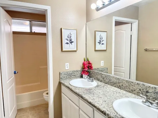 Turnkey 5 bedrooms 3 full bathrooms beautiful home. Enter to an open spacious living room with fireplace and formal dining room that features Cathedral ceiling, bright & airy. Large open kitchen with Granite counter top opens to a dining area and family room with another fireplace. hard to find one Bedroom Downstairs with double doors and a full bath. Separate laundry room. 3 car garage. Upstairs are 4 bedrooms, including a large master suite with walk in closet, a large master bath with granite counter tops, bath tub. The master bedroom suit also has a balcony overlooking the private backyard with fruit tree and grapevine.