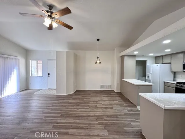 This charming single-story home offers a fantastic layout, a spacious fenced yard, and an attached two car garage. Inside, you'll find upgraded flooring throughout, no carpet, with over 1,100 sqft., 3 bedrooms, and 2 bathrooms. The living room is bright and inviting with a cozy fireplace and plenty of natural light. It flows seamlessly into the dining area and kitchen, creating an open and functional space perfect for everyday living or entertaining. The kitchen features brand new stainless steel appliances, durable tile countertops, and freshly painted cabinets. A convenient indoor laundry area is located just off the kitchen. Down the hallway, you'll find all three bedrooms and both bathrooms. The primary bedroom is spacious and includes an attached ensuite with dual sinks and a shower/tub combo. Both bathrooms have been updated with brand new toilets for added comfort and convenience. Venture outside to a low-maintenance backyard complete with rock landscaping, garden planter boxes, and a storage shed, ready for you to enjoy and make your own. Landscaping is included in the price for this beautiful home! Located in a welcoming community that offers fantastic amenities, including a pool and jacuzzi, park, basketball court, BBQ/picnic area, and a large grassy space, all just a short distance away. Dont miss out, schedule your showing today!
