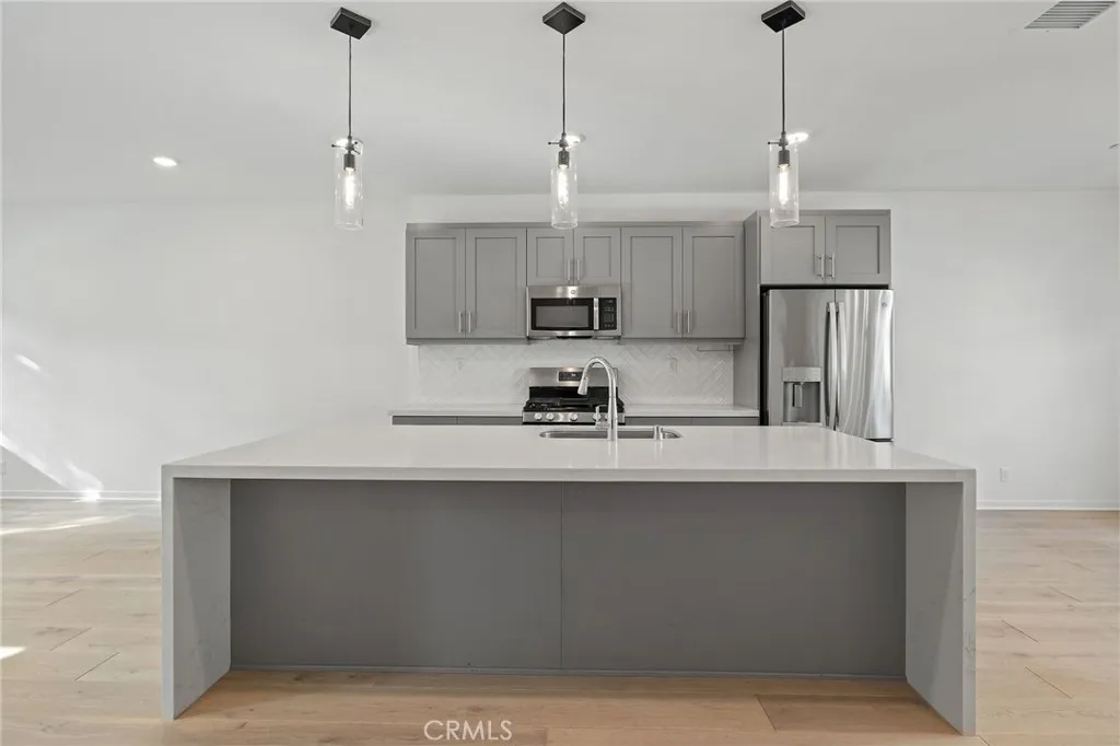 Experience modern luxury at 712 South Grable Circle, a professionally upgraded townhome in ParkerOne, a sought-after TRI Pointe Homes community in Orange. Built in 2021, this stunning residence showcases designer finishes throughout, including European Alabascato Dashwood hardwood flooring, Hunter Douglas Provenance woven shades, and a gourmet kitchen with quartz countertops, custom color upgraded shaker style cabinetry, a full herringbone subway tile backsplash, and a dramatic quartz waterfall-edge island. The bathrooms are beautifully upgraded with quartz countertops, framed mirrors, 6-inch backsplashes, and 3/8-inch glass shower enclosures. For a complete list of builders' upgrades please contact the listing agent. Enter through a charming covered porch and foyer to find a main-level office and powder room perfect for a home office or conducting business from home. The second level features an open-concept living area with a chef-inspired kitchen, walk-in pantry, guest powder room, and access to a spacious outdoor deck ideal for relaxing or entertaining. On the third level, the primary suite offers a walk-in closet, dual vanities, and a luxurious stand-up shower adorned with builder-quality upgrades. The secondary bedroom suite includes a soaking tub and its own private bath. A spacious laundry room is conveniently located on this level as well. Additional highlights include paid solar, sleek modern chandeliers, recessed LED lighting throughout, tankless water heater and dedicated EV charger circuit in the garage. The home enjoys a private interior location just steps fr