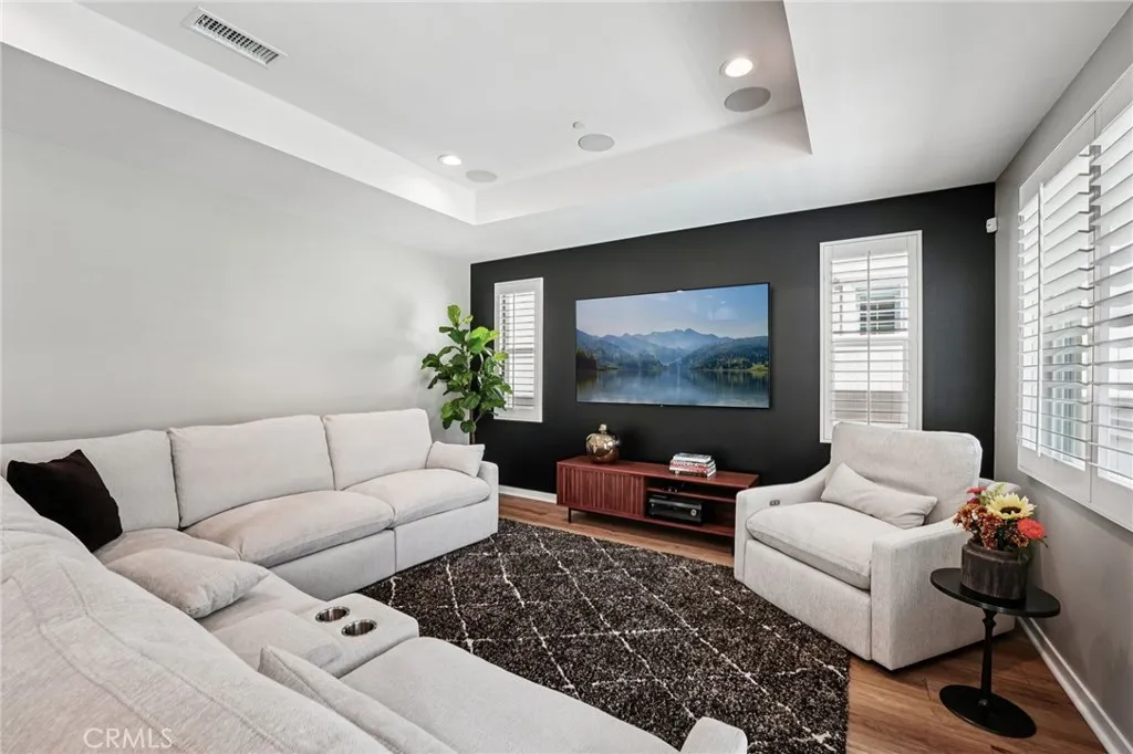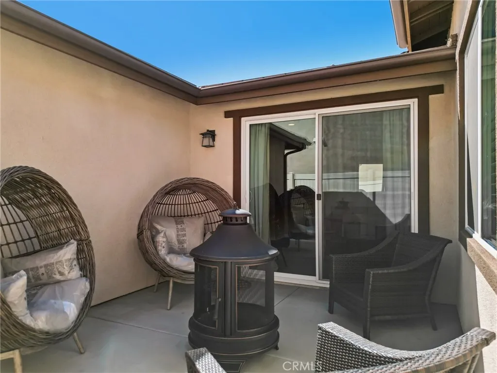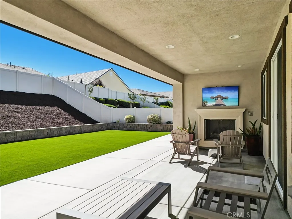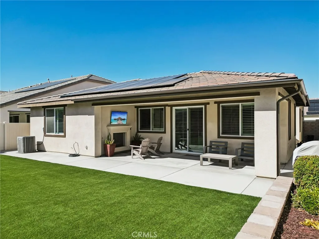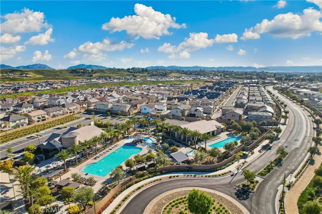 TURN-KEY SINGLE-STORY ESPLANADE HOME! This stunning single-story home offers 1,967 sq ft of open and inviting living space with 3 bedrooms and 2.5 baths. The thoughtful floor plan highlights a large center island kitchen, spacious dining area with sliding-door access to a private courtyard, and a comfortable great room that flows seamlessly into the California Room complete with a built-in fireplace and wall-mounted TV, perfect for entertaining or relaxing outdoors. This home has been beautifully upgraded throughout, featuring luxury vinyl plank flooring, plantation shutters, and a modern electric fireplace for year-round ambiance. The chefs kitchen boasts stainless steel appliances, soft-closing cabinetry, and ample counter space. The laundry room is equipped with matching soft-closing cabinetry and a convenient built-in sink. The garage is finished with epoxy flooring, an EV charger outlet, and leased solar for efficiency. A built-in Eero whole-home Wi-Fi/media system ensures seamless connectivity. Residents enjoy resort-style amenities including a pool & spa, clubhouse, fitness center, pickleball & bocce courts, BBQ areas, and scenic trails all just minutes from Temecula Wine Country, where hot-air balloons drift gracefully overhead.