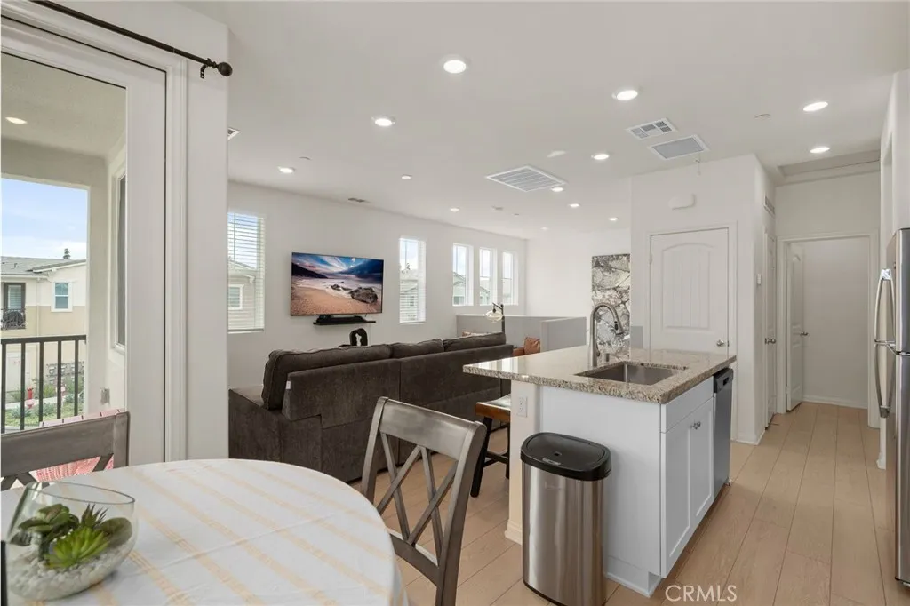 WELCOME TO GABION RANCH -MODERN LIVING WITH COMFORT, STYLE, and CONVENIENCE! Built just a couple of years ago, this beautifully designed condo offers all the benefits of single-level living with the living space situated entirely on the second floor and the entry and 1-car garage conveniently located on the main level. Step upstairs to an inviting, open floor plan filled with natural light, recessed lighting, and elegant LVP flooring throughout. The spacious living area flows seamlessly into the dining and kitchen spaces, perfect for both everyday living and entertaining. The modern kitchen features quartz countertops, a large center island, stainless steel appliances, and plenty of cabinet space. The private primary suite offers a walk-in closet, dual vanity sinks, and a beautifully tiled walk-in shower, while a guest half bath and stackable laundry area add everyday convenience. Enjoy your morning coffee or unwind in the evening on your private balcony with beautiful mountain and community views. Thoughtful upgrades include a Quiet Cool whole-house fan, tankless water heater, solar panels, and a smart home monitoring system, offering energy efficiency and modern comfort. The Gabion Ranch community provides resort-style amenities including sparkling pools and spas, a clubhouse, barbecue and outdoor cooking areas, playgrounds, a dog park, and beautifully landscaped walking paths. Located in North Fontana near shopping, dining, parks, and freeway access, this move-in-ready condo combines modern design, low-maintenance living, and a vibrant community setting. COME, SEE HOW MU