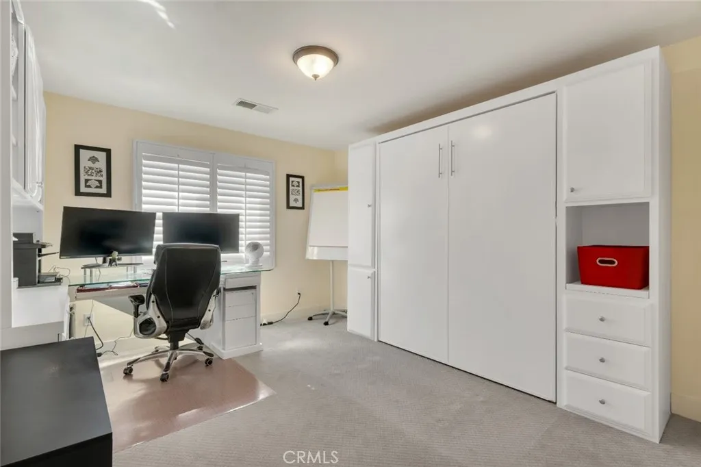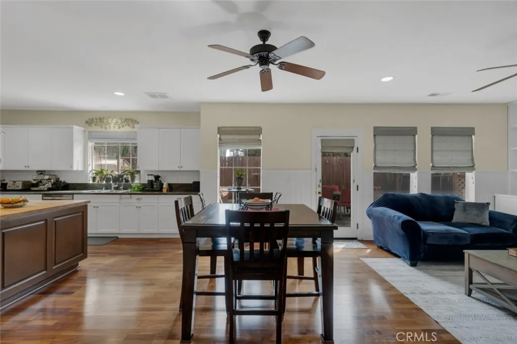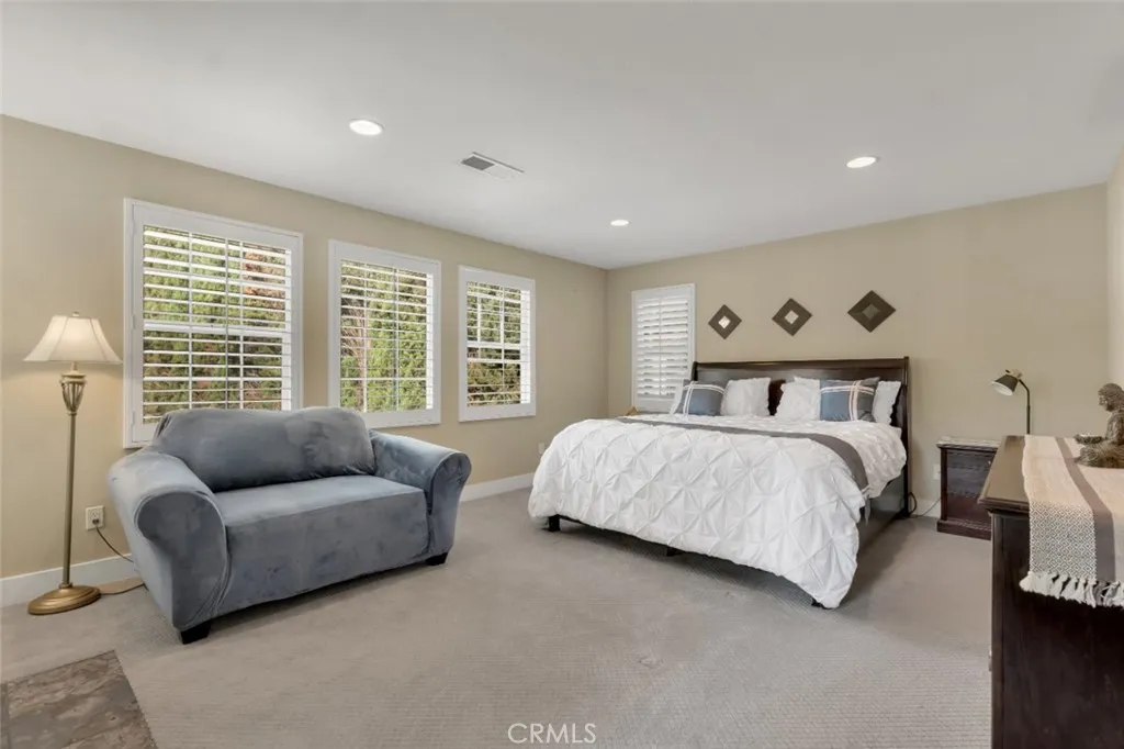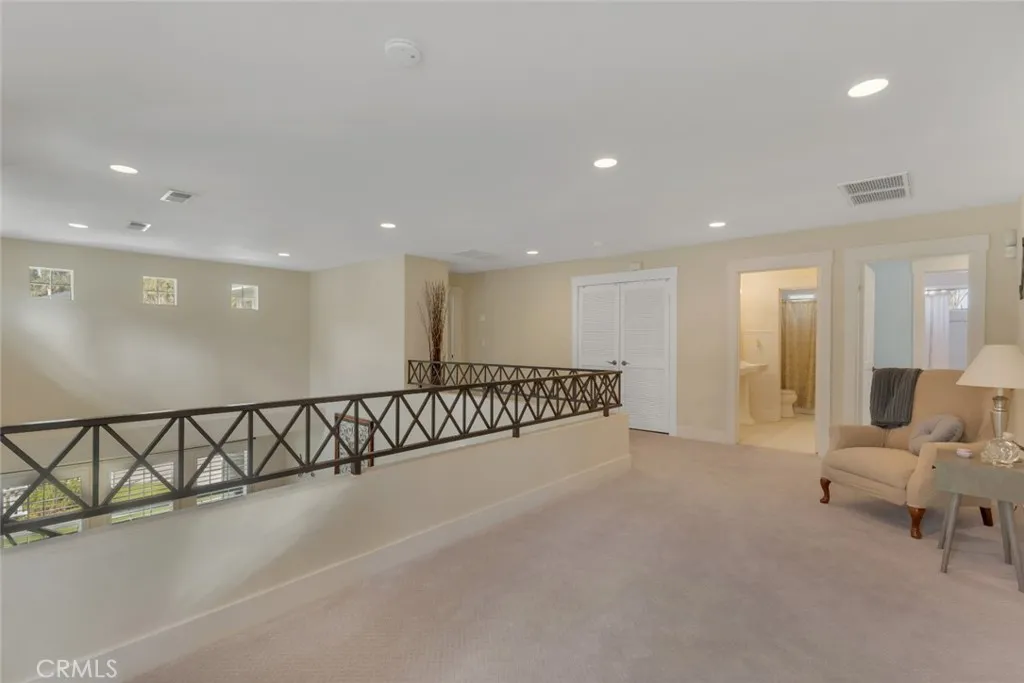 Nestled on a quiet, residential cul-de-sac in Winnetka, this beautifully maintained 5-bedroom, 4-bath residence offers nearly 3,300 sq ft of sophisticated living space, blending timeless design with modern amenities and peek-a-boo mountain views. Set behind a white picket fence, with drought conscious turf lawn, the home creates irresistible curb appeal. High-end, thoughtful touches throughout like hardwood floors, recessed lighting, dual pane windows, plantation shutters, and more! Step inside to a grand living room with soaring two-story ceilings, clerestory windows, and a fireplace that sets a warm tone for elegant entertaining. The adjoining formal dining room features decorative wainscotting and a built-in bar area. The space flows effortlessly into a chefs dream of a kitchen, designed for both style and function, showcasing white shaker cabinetry, rich granite countertops, stainless steel appliances including a 5-burner gas range, and an expansive butcher-block island. The kitchen is open to a large, informal, living room with decorative beadboard wainscotting, custom built-ins, and glass doors out to the patio, that could be utilized as a great room with both informal living and dining. There is one bedroom downstairs with nearby hall bath that offers flexibility and privacy for guests or a home office. Upstairs, a generous loft/landing overlooks the living room below and offers additional space to be used as a casual den, a play area, or more. The primary suite is a calm retreat featuring a cozy gas fireplace, dual walk-in closets, and a private balcony. Its luxuri