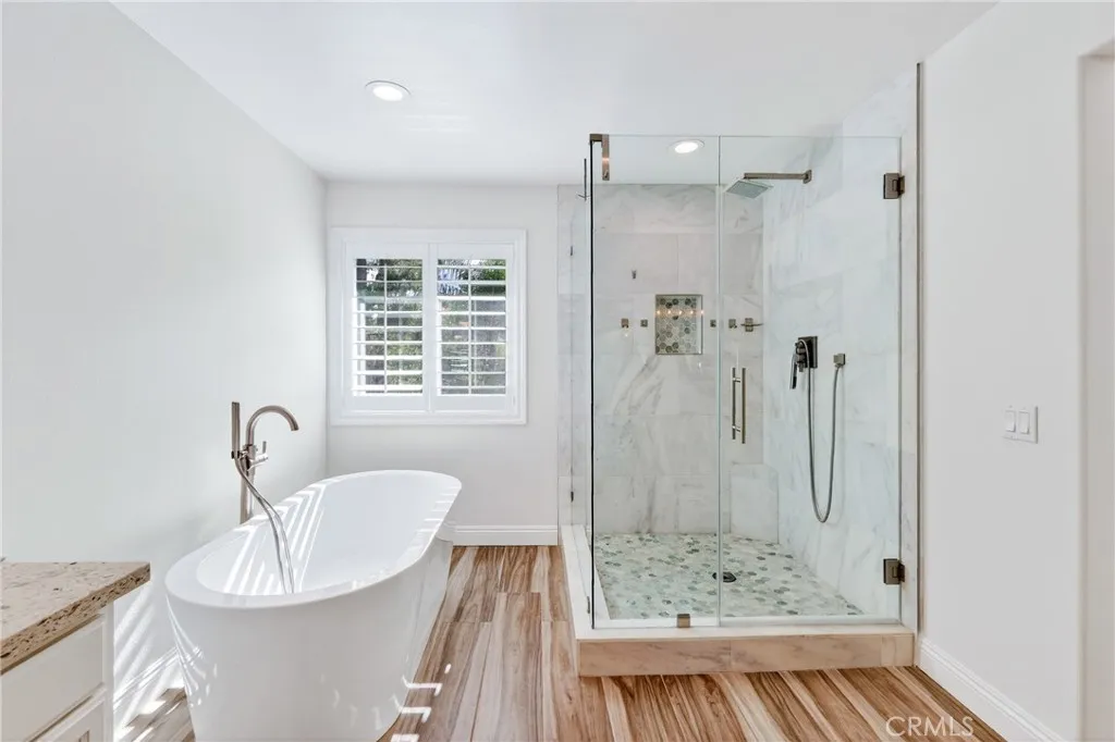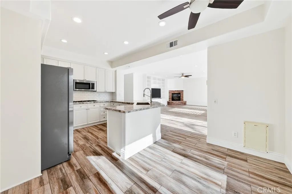 PRIVATE CUL-DE-SAC UPGRADED SINGLE FAMILY HOME IN THE PRESTIGIOUS GUARD-GATED COMMUNITY OF CANYON CREST! Once you drive up, you will notice the expansive driveway and how the home is nestled privately at the end of the street. Step inside and you'll see the high ceilings, the wide-open feeling, and how much natural light comes through. The first level features a bedroom with a built-in desk, ideal for an in-home office or study, and a separate full bath. Separate the formal living room and dining room. The kitchen is upgraded with white cabinetry, a modern countertop, tile-and-wood flooring, recessed lighting, and a built-in microwave and oven. The kitchen overlooks the family room and your own paradise backyard. The family room includes a fireplace and a built-in entertainment station. The backyard is an entertainer's dream, with a custom pool with a slide, a separate spa, and an open area off to the side perfect for entertaining friends and family. Being the corner lot, no one is directly behind you, and with all the palm trees, it feels more private. Total of 5 bedrooms and 4 baths. There is a separate laundry room downstairs with its own sink and station. Walk-in pantry near the kitchen. The Primary bedroom has plenty of space and includes a built-in desk for a home office, a walk-in closet, a primary bathroom with a standalone shower separate from the standalone soak-in tub, dual vanities, and a separate station with plenty of storage and countertop space. Total of 4 attached garage spaces and a large driveway to park even more vehicles. Solar Panels and EV car charger