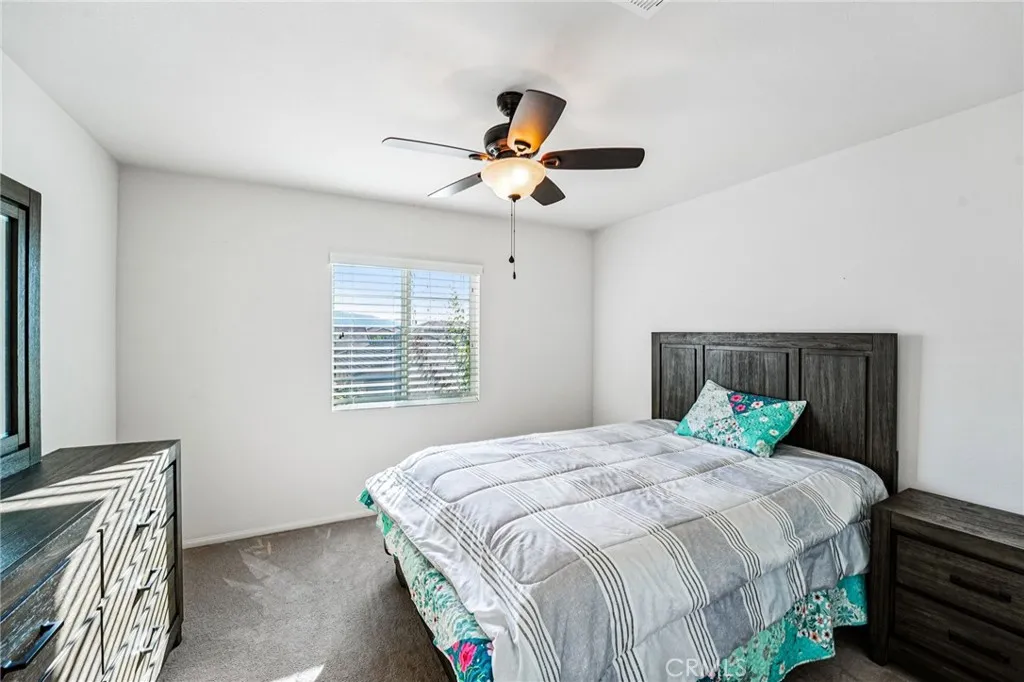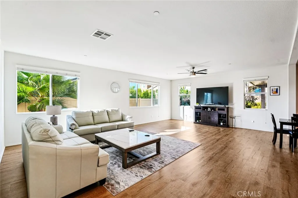 Beautiful 4 bed, 3.5 bath Jurupa Hills home offers great curb appeal with 2,959 sqft of living space and sitting on a 8,276 sqft lot! The interior features an open and spacious floor plan with recessed lights, vinyl flooring in the main living spaces, and an abundance of natural light throughout. The huge living room flows into the dining area and the gorgeous kitchen with large center island, granite countertops, wood cabinetry and a pantry. A main floor bedroom, full size bathroom, and a half bathroom complete the main floor. Upstairs you will find a huge bonus loft or 5th bedroom option as well as the primary suite with private ensuite featuring a soaking tub and a separate shower, as well as a walk-in closet. There is also a 2nd floor, full-size, hall bathroom for the 2 secondary bedrooms to share, and a large laundry room with extra storage space. Relax and entertain in the lush backyard with covered patio, and this home also has an attached 3-Car Garage. Conveniently located not far from shopping, dining, Oak Quarry Golf Club, trails, and the 60 Fwy, schedule your tour today! ****(All the the furniture is for sale in the house.)****