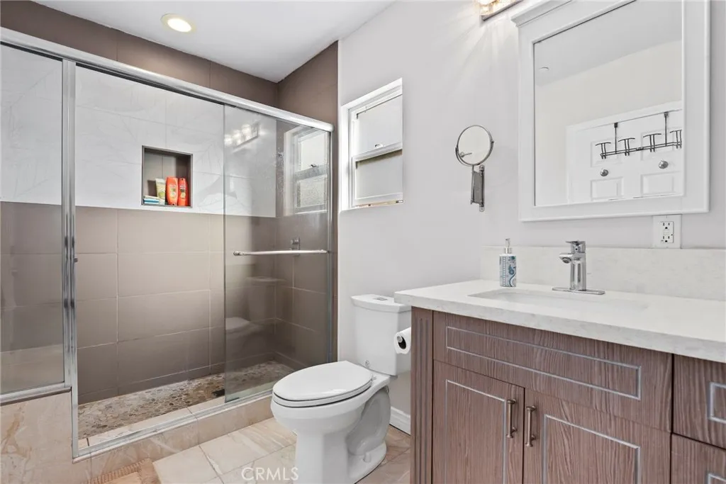 Spacious 6-bedroom home with dual primary suites, paid solar, mountain views, and Arcadia schools! As you enter through the double doors, youll be greeted by a formal entry with high ceilings, a stunning marble foyer with a custom medallion and a very welcoming feeling. The large living room features cozy carpet, fireplace, and recessed lightingperfect for relaxing or entertaining. A formal dining room for hosting large gatherings. Brand new sliding glass doors help keep things quiet and energy efficient. The custom kitchen is a chefs dream, with an eat-in island, dining area, GE appliances, a single oven with microwave above, trash compactor, tile flooring, and plenty of storage. The kitchen sink has its own water filtration system. This home offers real hardwood and carpet flooring, ceiling fans in all rooms, built-in speakers, and a security system with a front yard camera for peace of mind. It also has a paid-off solar system, a tankless water heater, and dual-zoned HVAC...each bedroom has its own temperature control for convenience. There are three bedrooms downstairs, including a primary bedroom with a remodeled Jacuzzi bath. Two more remodeled bathrooms are also on the main floor. Upstairs youll find three additional bedrooms, including a second primary bedroom with another remodeled Jacuzzi bath, and a hall bath. The upstairs primary bedroom also offers a balcony to enjoy the gorgeous view of the mountains. The inside laundry room includes the washer and dryer (watch your step when entering), and the home features an interior fire sprinkler system for added safety.