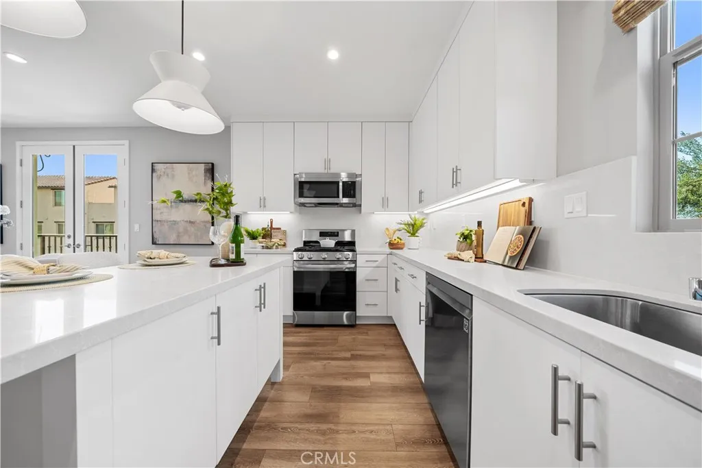Welcome to this stunning former model home in the highly desirable Cypress Village community. This beautifully upgraded tri-level corner unit with a solar system offers serene park views from the kitchen and dining area. Features include a bright open floor plan, a gourmet kitchen with quartz countertops, sleek cabinetry, and stainless steel appliances. The spacious primary suite includes a spa-like bath and walk-in closet, while the secondary bedroom is perfect for guests or a home office. Enjoy resort-style amenities including pools, parks, playgrounds, and scenic trails. Conveniently located near top-rated Irvine schools, shopping, dining, and major freeways. This elegant, move-in-ready home combines modern style, comfort, and location in one of Irvines most sought-after neighborhoods.