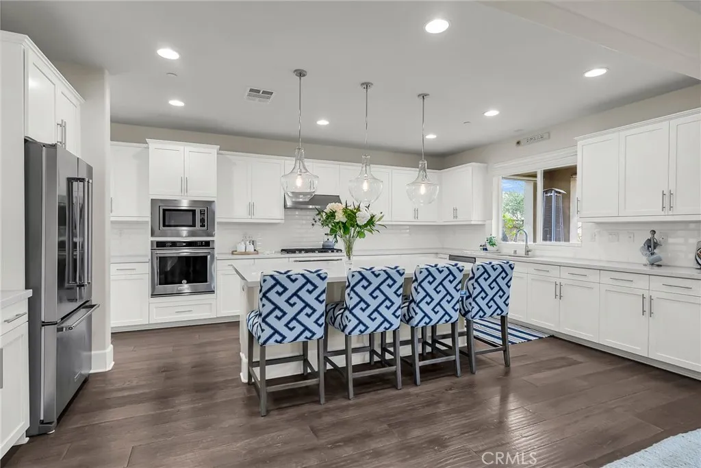 Nestled in the highly sought-after Orangecrest neighborhood, this exceptional residence seamlessly blends timeless elegance with modern sophistication. Every detail has been meticulously curated to create a serene sanctuary of style and comfort. A charming front porch welcomes you with grace, offering the perfect spot to unwind as the sun sets in a cascade of golden hues. Step inside to discover gorgeous hardwood flooring, impressive high ceilings, and exquisite crown molding and baseboards that set the tone for refined living. The heart of the home is an expansive open-concept kitchen and living area, ideal for contemporary lifestyles. The chefs kitchen boasts striking quartz countertops, premium KitchenAid appliances, abundant upgraded cabinetry, a farmhouse sink, walk-in pantry, and a generous center island illuminated by pendant lighting. The adjoining dining and living spaces are bathed in natural light, creating a relaxed yet sophisticated ambiance. The formal dining room and adjacent butlers pantry elevate your entertaining experience. A first-floor en-suite bedroom offers versatility for guests or multi-generational living. Upstairs, a cozy loft with a built-in desk provides a peaceful retreat, while three spacious secondary bedroomsone with its own en-suite bathensure comfort and privacy. The palatial primary suite is a true haven, featuring a spa-inspired bathroom with a standalone soaking tub, luxurious shower, dual vanities, marble flooring, and a custom walk-in closet with built-in organizers. The sweeping, pool-sized backyard presents endless possibilities for