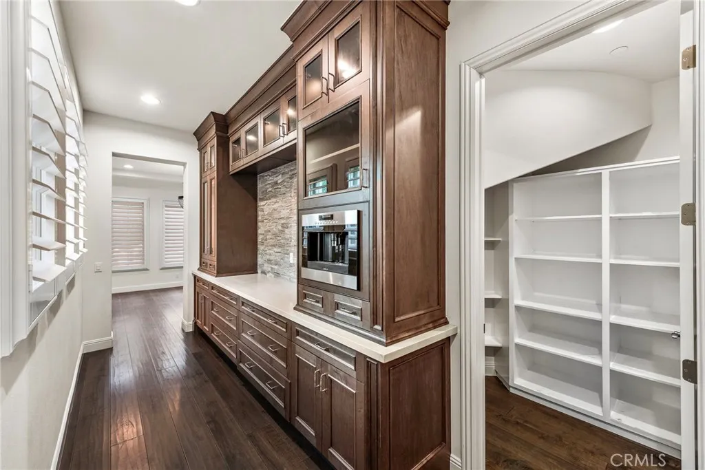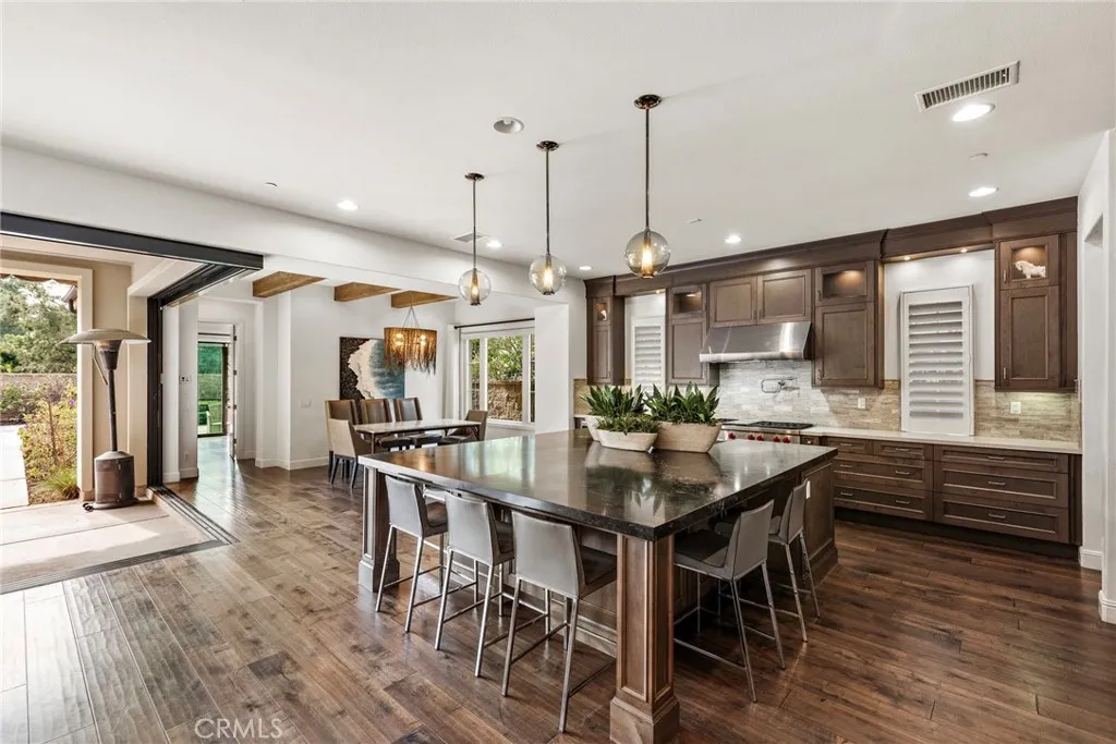 Luxury furnished rental property in the gated community of Hidden Canyon with an entertainer's backyard. Upon entering the home you are greeted by a foyer and formal dining room which could be used as an office or music room, a powder room, guest room with en-suite bathroom, and a large open concept living room which opens to the kitchen and additional dining area. The kitchen features a large island, double convection ovens, sub zero fridge, 6 burners plus griddle, pot filler, microwave, wine fridge and a butler's kitchen with built-in coffee machine and lots of storage. This home is exceptional for indoor/outdoor living with pocket doors that span the entire length of the living room and kitchen, creating an incredible entertaining opportunity. The outdoors has a covered BBQ and eating area, followed by a covered fireplace and built-in seating area, finished with multiple play areas for children including soft grounds below the bars. Up the grand staircase you are greeted by a large loft, a master suite with office area, private balcony, 3 walk-in closets, soaking tub, double shower and sinks, and 3 additional bedrooms each with their own bathroom. This home has solar, wired for electric car charger, built-in speakers, Control 4, hot water sensors in bathrooms and kitchen. The community is 24 hour guard gated with pool and hot tub and playground area, and conveniently located to the freeways, close to Irvine Spectrum Center, Quail Hill Shopping Center, South Coast Plaza, and short driving distance to Laguna Beach and Newport Beach.