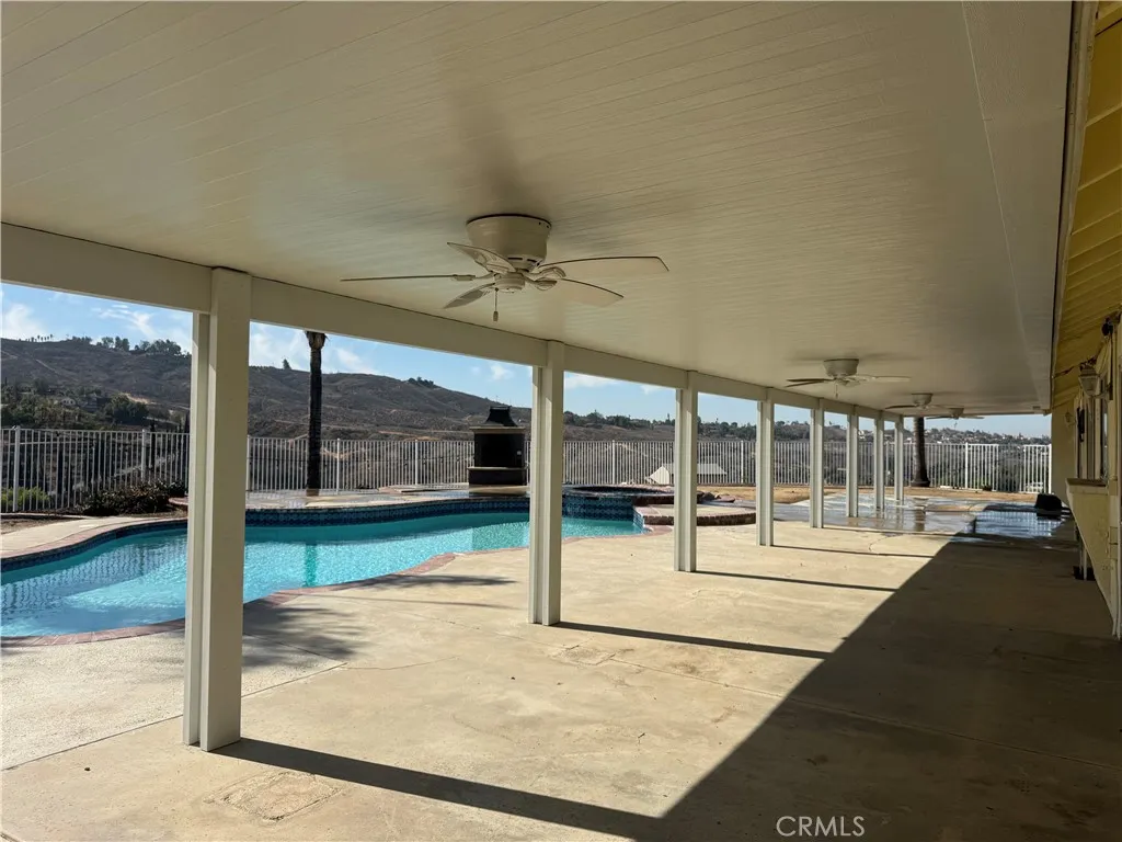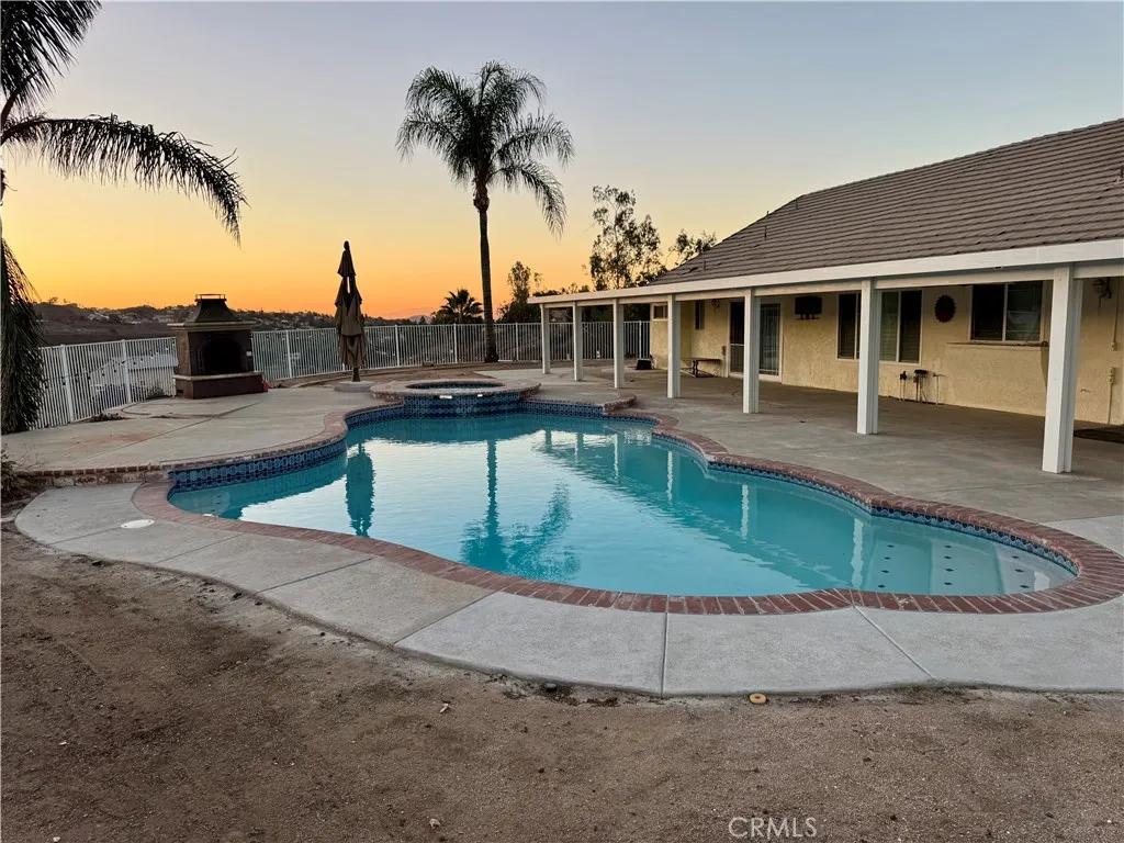 Single-Story Four-Bedroom, Three-Bath Pool Home with Breathtaking Views! Tucked away at the end of a cul-de-sac, this stunning single-story home sits on a 4.2-acre lot offering expansive hillside and sunset views. The property features a large front yard and extended driveway, with the home thoughtfully set back for added privacy. Through the gated RV entrance, youll find an additional area with abundant parking for boats, trailers, and toysplus property has three-car garage attached and RV access on both sides of the home. Inside, the remodeled kitchen boasts new quartz countertops, and a breakfast bar. The family and living rooms share a dual-sided fireplace and a convenient wet bar, creating a warm and inviting atmosphere ideal for gatherings and entertaining. The spacious primary suite features sliding glass doors that open to the backyard, an updated en-suite bathroom, and a generous walk-in closet. Two additional bedrooms share a Jack-and-Jill bathroom, each with its own vanity and private spaceone with a walk-in closet. A separate bedroom and nearby bathroom on the opposite side of the home offer excellent privacy for guests or teens. Step outside to enjoy the recently resurfaced pool and spa, an expansive covered patio, and plenty of open space to relax and take in the views. Zoned A-1-1 in a horse-friendly area, the property offers multiple potential sites for an ADU, RV garage, or equestrian facilities. The perfect combination of privacy, space, and potential!