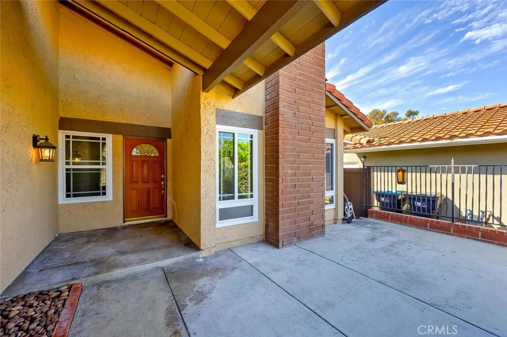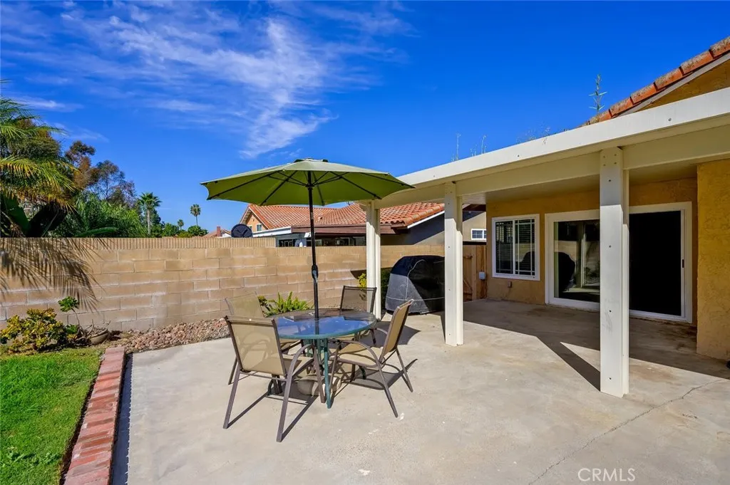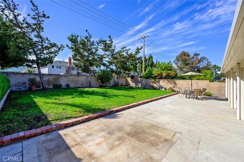 This charming 3-bedroom, 2-bath home in beautiful Mission Viejo offers 1,654 square feet of comfortable living space on a 7,000-square-foot lot. Lush, mature landscaping welcomes you up the steps to a spacious courtyardan ideal spot for relaxing or entertaining. Inside, youll find an inviting living room with plush carpeting and a cozy brick fireplace, perfect for cool, breezy evenings. The open kitchen and adjoining dining area create a wonderful space for gatherings, whether youre hosting friends or enjoying family dinners. The backyard features a generous lawn area for sunning and play, along with a covered patio that provides the perfect shady retreat. Three spacious bedrooms include a primary suite with a walk-in closet and private bath, completing this lovely homes comfortable layout
